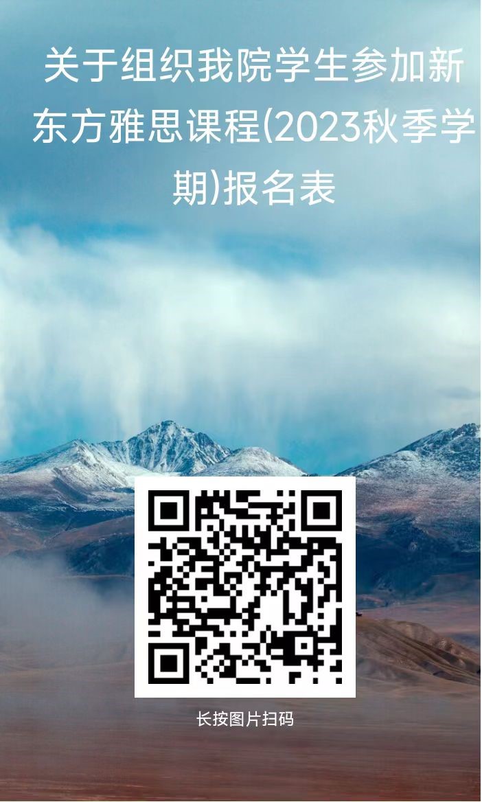 为了创建学院国际化的学习环境,提高学院国际化办学质量,帮助同学们提高英语能力、自身竞争力,带动学院英语学习氛围,提升整体深造率,助力学院双一流学科建设,经学院与长春市新东方教育培训学校有限公司沟通协商,特面向院内学生开设雅思课程。