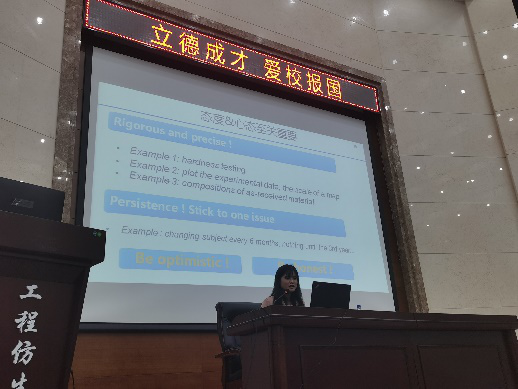 报效祖国的经历,让同学们感受到了吉大材料人对于学术研究的热情以及浓厚的爱国情怀。随后,查老师又从“提高文献检索能力,避免实验设计重复;了解前期研究工作,优化实验设计;立足身优势,扬长避短;选择适合自己的选题,事半功倍”四个层面向同学们传授了关于研究选题以及学术能力培养方面的宝贵经验。