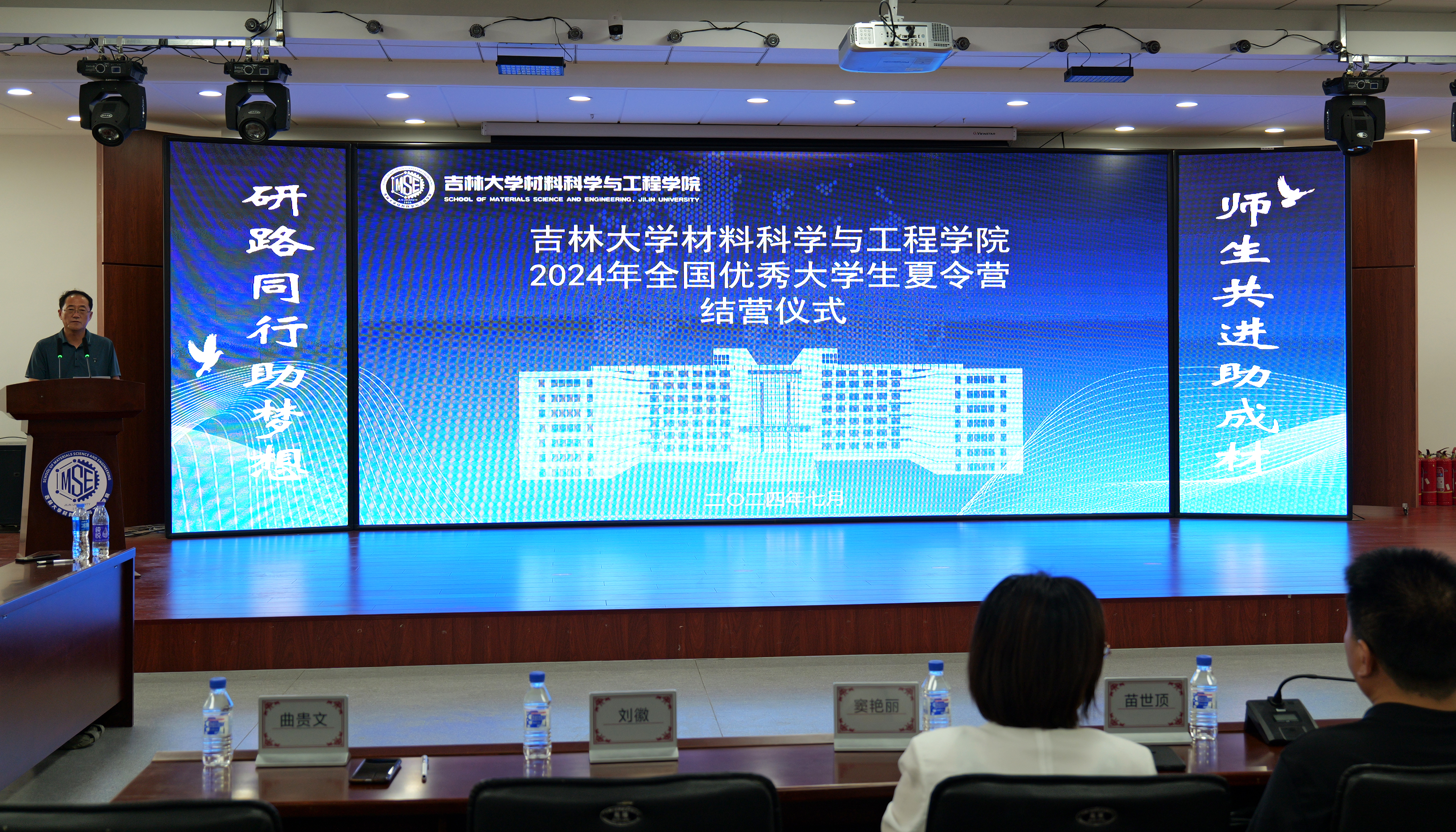 2024年全国优秀大学生夏令营结营仪式,学院党委书记刘远、党委副书记曲贵文老师、无机非金属材料工程系苗世顶老师、材料科学系王海涛老师、田宏伟老师、金属材料工程系王国勇老师、高分子材料与工程系窦艳丽老师和研究生办公室主任刘徽老师作为学院代表出席本次活动。曲贵文书记表示:“本次夏令营是营员与学院双向了解与选择的桥梁,也为全国高校的优秀大学生提供了相互切磋、研讨、交流的平台,为期三天的夏令营虽然短暂,但为营员们叩开了了解色图