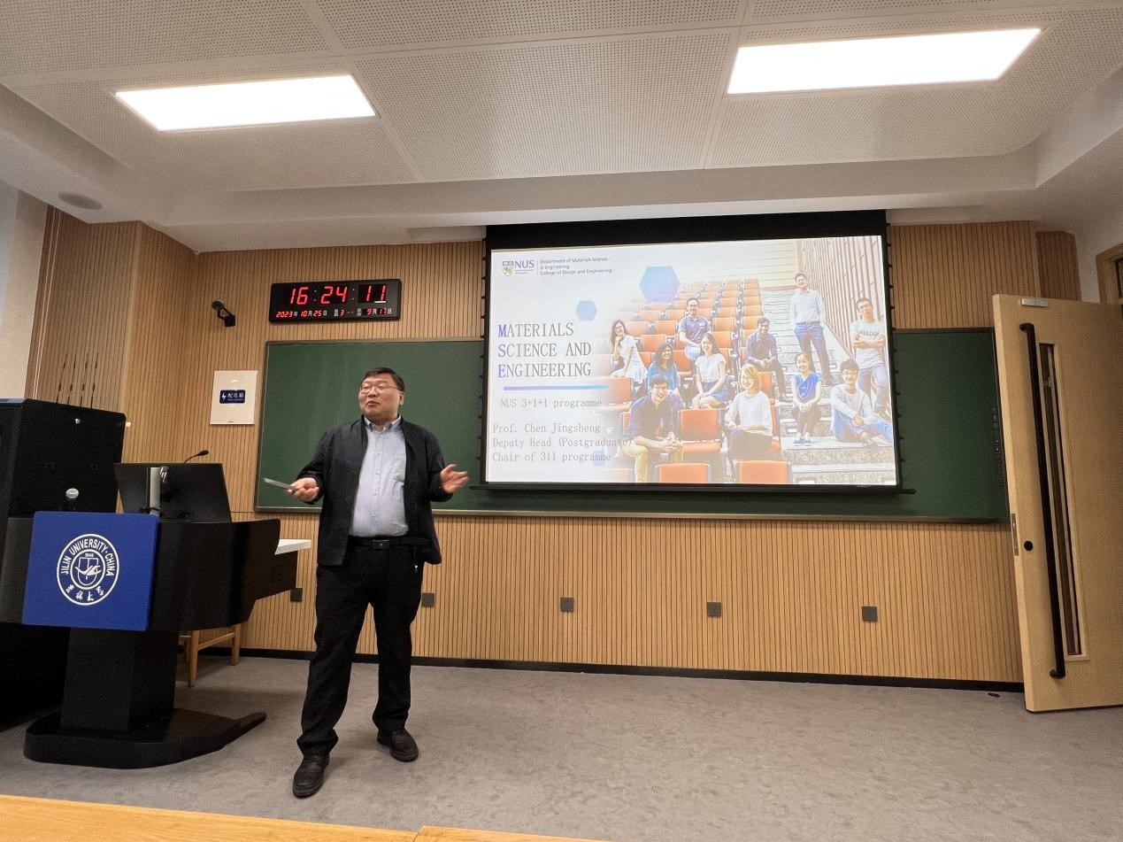 会上,首先由新加坡国立大学苏州研究院材料科学与工程专业朱燕婷老师,对新加坡国立大学的“3+1+1”联合培养项目进行了详细介绍,并介绍目前参与该项目的学生情况,该项目通过三年的国内大学本科学习、一年的衔接课程和一年的硕士课程,培养具有国际视野的高级人才;随后,新加坡国立大学材料科学与工程系教授、新国大苏州研究院和新国大重庆研究院首席研究员陈景升老师介绍并分享了自己的研究方向和科研心得,激发了同学们的科研兴趣。陈教授表示,留学的经历可以成为人生中难得的财富,不仅可以提升个人的学术水平和专业能力,还可以拓宽视野、增长见识。期待同学们赴新加坡继续深造。