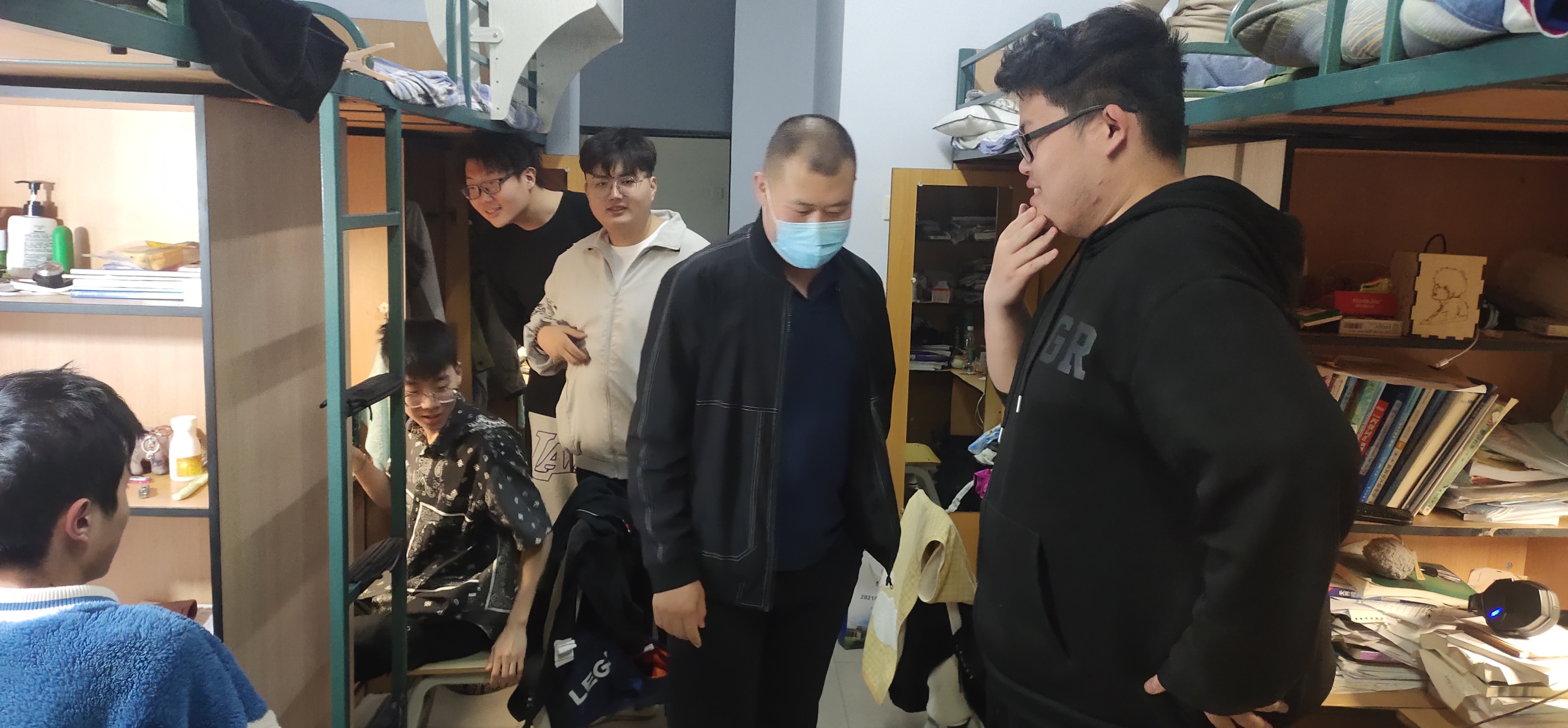 “寝室一小时”微思政:在本周走访寝室过程中,严老师实地调研了解同学们五一期间的假期安排以及近期学生群体中的个别现象,与同学们简单交流了包括运动会等的工作要点和安排;期间,深入寝室进行“晚点名”工作,确保学生在校学习生活的安全稳定;本次走访寝室结束后,严老师组织各班班长召开了五一假期前的安全稳定工作会,对五一期间的安全稳定工作进行落实和安排,同时,进一步提醒各班在工作布置和通知传达方面要耐心细致做好解释,做到工作到位。