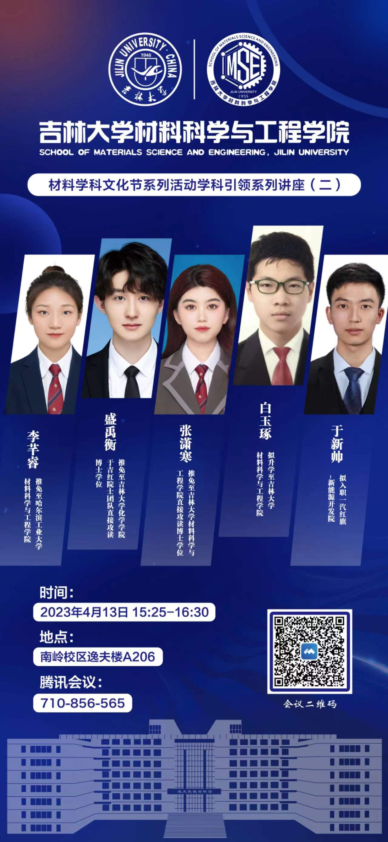 为加强本科生对材料学科就业情况的了解,全力推进学院高质量人才发展,色图 于2023413日下午,在色图 南岭校区逸夫楼A206开展了材料学科文化节系列活动,学科引领系列讲座(二)——“学长学姐帮帮问”。本次座谈会由学院团委负责人兼2020级、2022级辅导员王晗主持。会议邀请到了五位2019级优秀本科生进行分享2020级、2022级本科生参加会议。