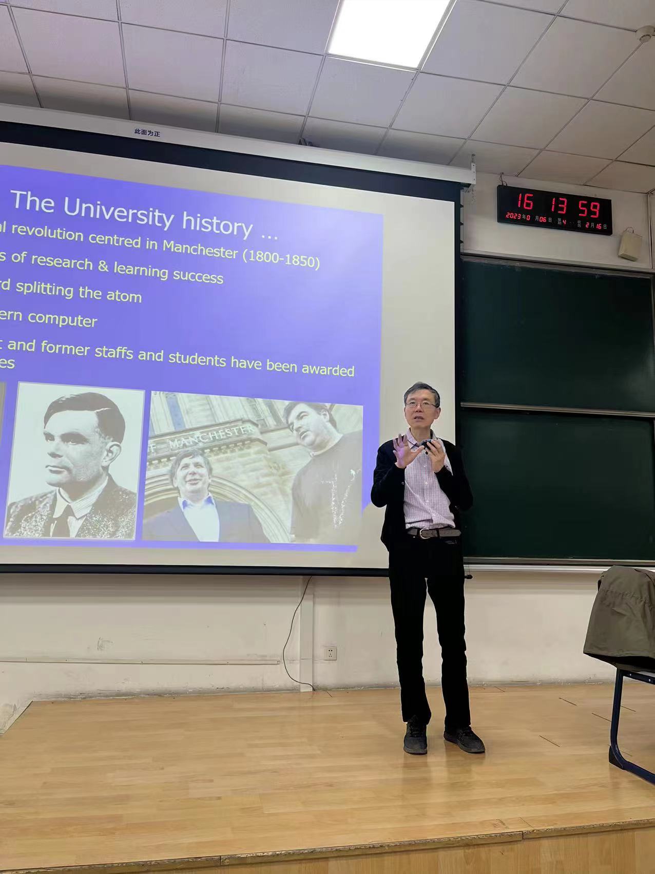 为加强国际学术交流,提升同学们的国际视野和专业素养,英国曼彻斯特大学于2023年4月6日下午在逸夫教育大楼A206召开材料学科宣讲会,色图 副院长崔小强出席本次宣讲会,2022级本科生全员参加。会议由英国曼彻斯特大学材料科学中心肖平教授主持。