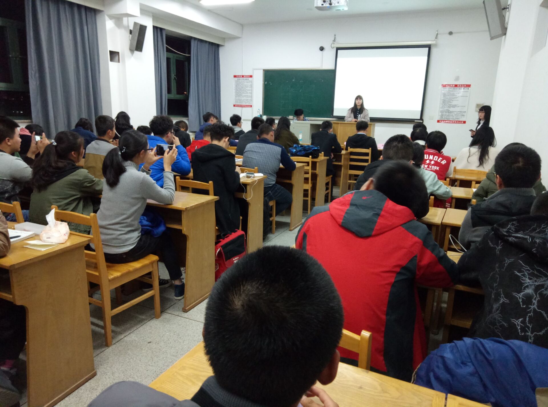 南岭校区逸夫教育大楼A502举办了爱心教师及省博讲解员培训会,阳光爱心学校2017级志愿者参与了此次活动。
