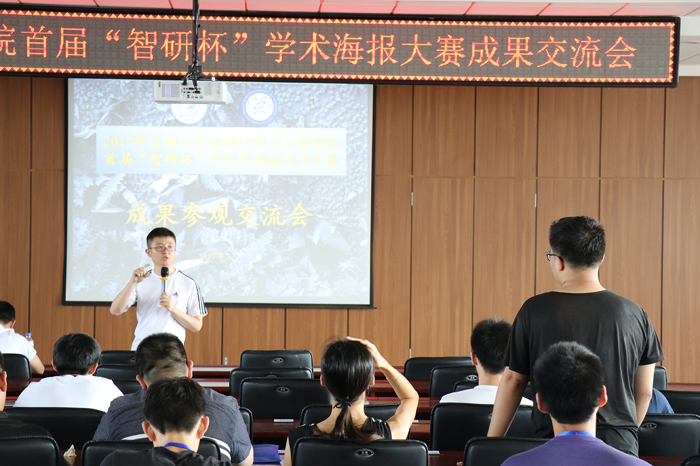 2017年7月15日下午,我院为营员们安排了学术海报大赛成果参观交流会。在逸夫机械材料馆八楼会议室,首先由朱永福副院长介绍了首届“智研杯”学术类海报设计大赛的相关情况。接着,由郎兴友老师和杨治政老师给营员进行了学术海报讲座。讲座结束后,同学们针对老师讲的问题,提出自己的疑问。