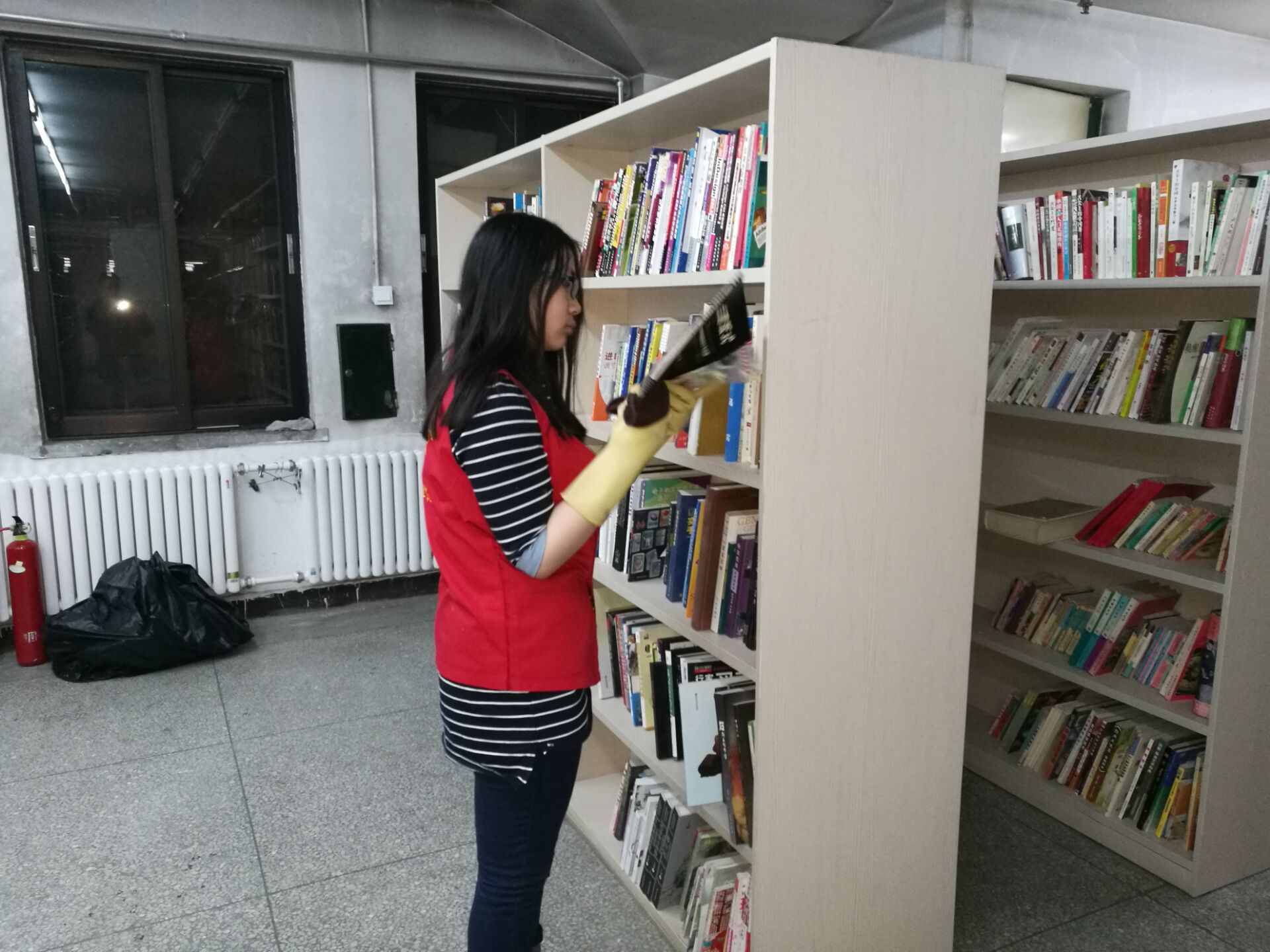 活动伊始,图书馆工作人员对活动参与者进行了按照编号整理书籍顺序的简单培训。随后,大家开始分工合作,活动井然有序地展开。每个志愿者都争分夺秒并认真仔细地工作着,在大约两个小时的时间内,志愿者们不仅将散在各处的书籍按序整理好,并按要求置于书架上,同时又把书和书架上的灰尘清理干净。最后,伴随着图书馆管理员们满意的微笑与热诚的掌声,活动圆满结束。