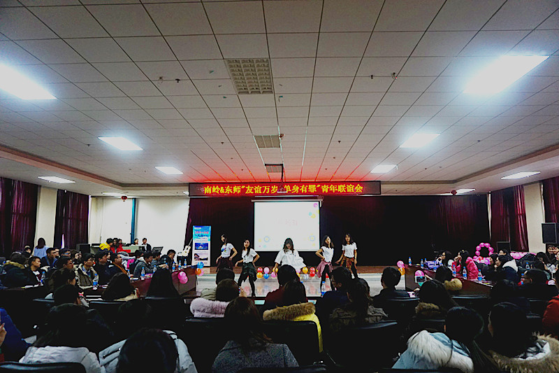 伴随着浪漫的背景音乐,单身联谊会正式开始。一段热辣的开场舞引来全场的阵阵欢呼。随后,在主持人的引导下,到场的同学参加了一系列游戏:多人抱团,二人三足,双人背气球,猪八戒背媳妇,获胜的同学获得了精美的奖品,幸运观众还获得了恒大集团赞助的暖手宝、优盘和挂烫机等纪念品。随着活动的进行,现场氛围被充分地调动起来。活动期间的各类才艺表演更是让在场观众掌声不断,酷炫的街舞表演,优雅的吉他弹奏,动听的女生独唱,更有现场观众自告奋勇,上台表演,将联谊活动不断推向高潮,洋溢着温馨、喜悦之情。伴随着吉林工商学院原声乐队悠扬的民谣演唱,单身联谊会落下了完美的帷幕。同学们在活动的过程中,收获了快乐,也结识了新的朋友。