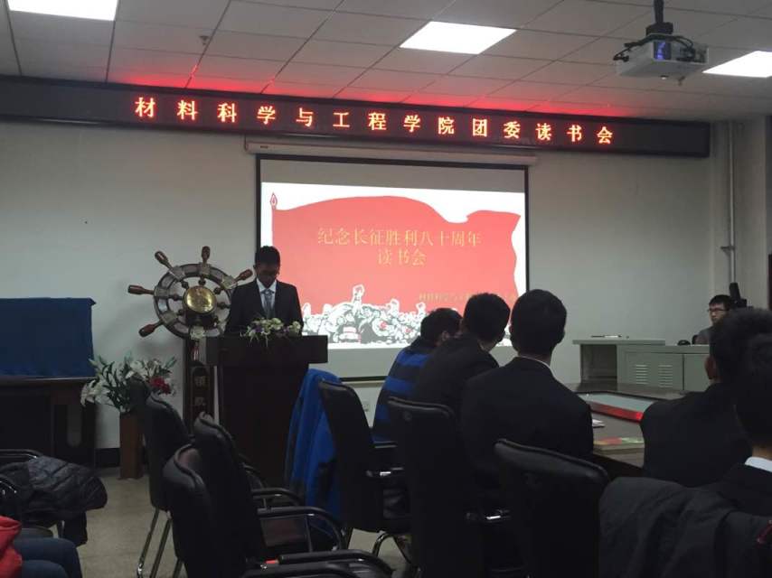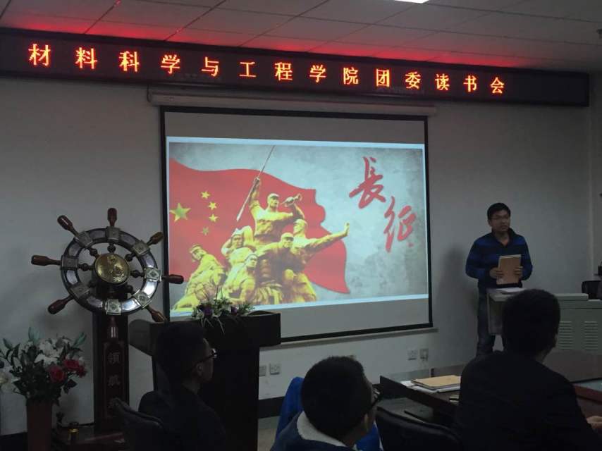 为了使学生更加深入地了解、继承与弘扬革命的理想和信念,坚信正义事业必然胜利的长征精神,材料学院团委于11月10日在逸夫机械材料馆410室举办了“纪念长征胜利80周年”读书会活动。