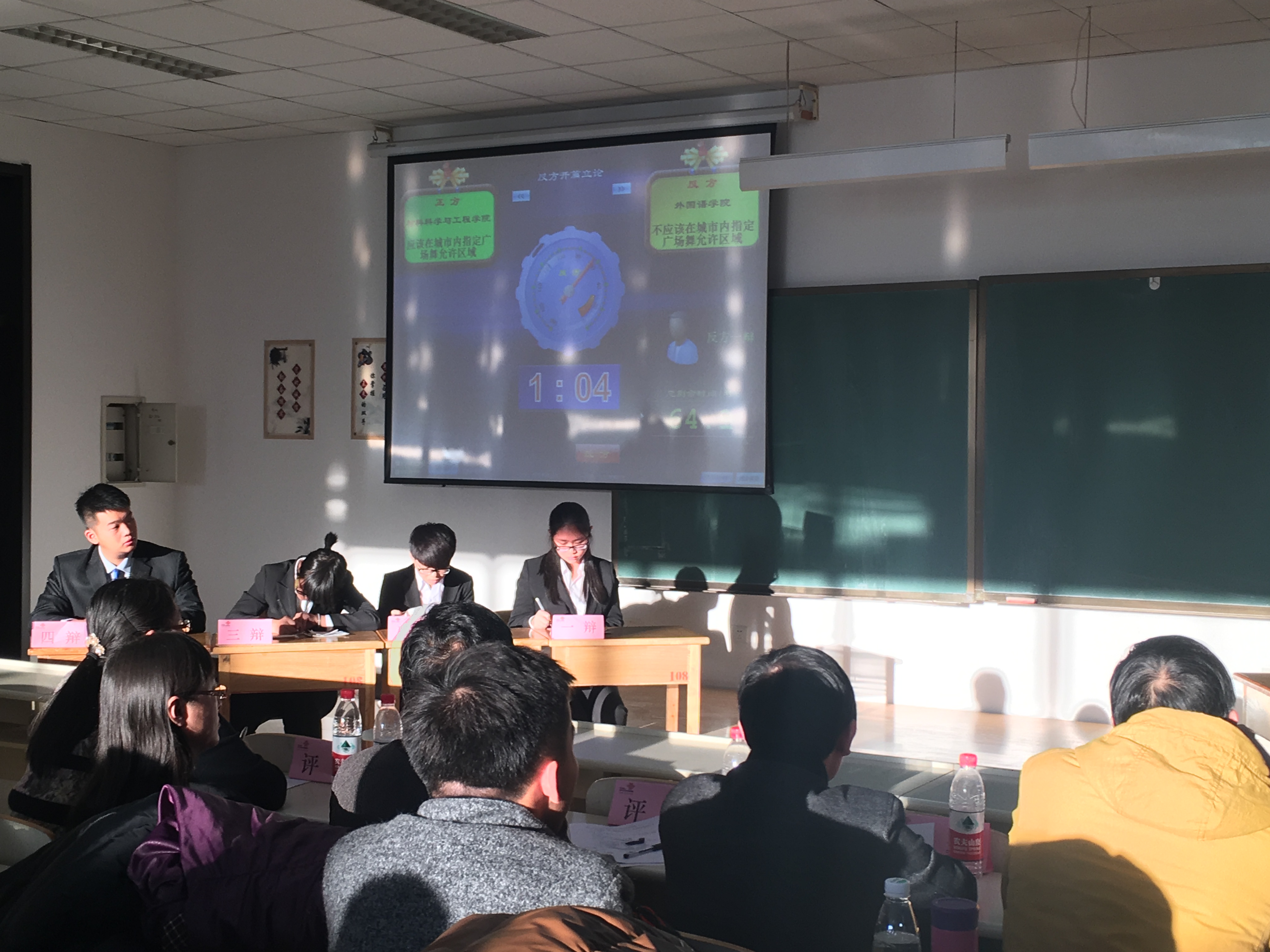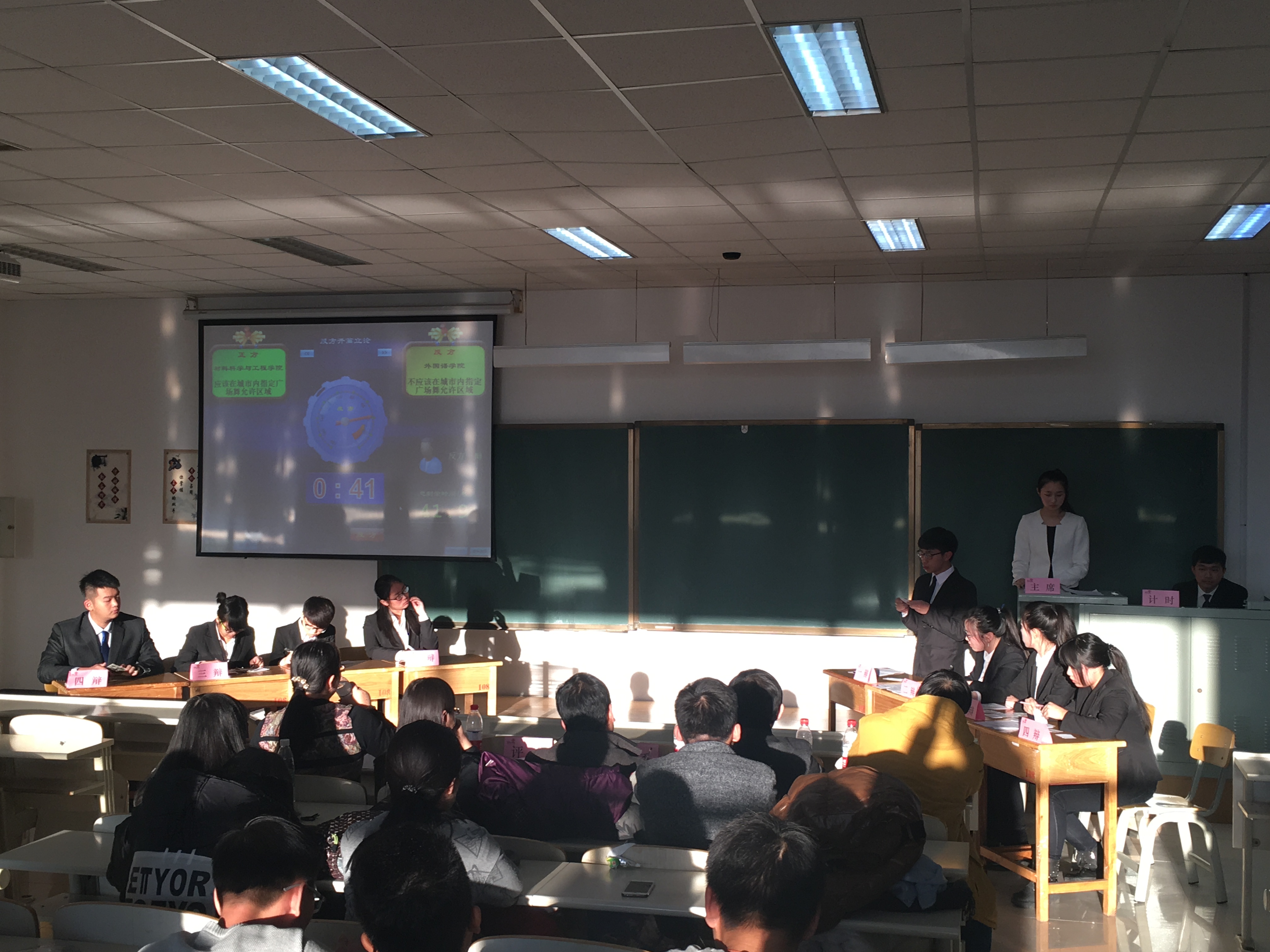 本场辩论赛,双方围绕“是否应在城市内指定广场舞允许区域”展开激烈辩论。色图 代表正方“应在城市内指定广场舞允许区域”,外国语学院代表反方“不应在城市内指定广场舞允许区域”。首先,在开篇立论环节,正方一辩围绕近年来关于以广场舞为代表的城市精神文明建设展开论述,系统地阐述了在城市内指定广场舞允许区域的益处。在反方一辩发言之后,正方四辩紧抓对方语言中的漏洞,对对方的不合理之处进行了激烈的辩驳。随后的质询环节,正方二辩、三辩发挥精彩,不仅对对方的质询进行有力的还击,还从中国城市精神的发展这一角度进一步论证观点。随之而来的自由辩论环节,正方辩论队四位辩手,措辞精准,条理清晰,论据翔实,虽然稍有失误,但依旧对对方辩友进行了有力的攻辩,展现了辩手们出色的口才。最后,双方四辩总结陈词,对对方辩手在辩论过程中的漏洞进行攻辩,并再次强调己方所持观点。最终,我院代表队惜败对手,但双方辩手依旧给在场观众留下了深刻的印象,呈现出一场精彩绝伦的比赛。