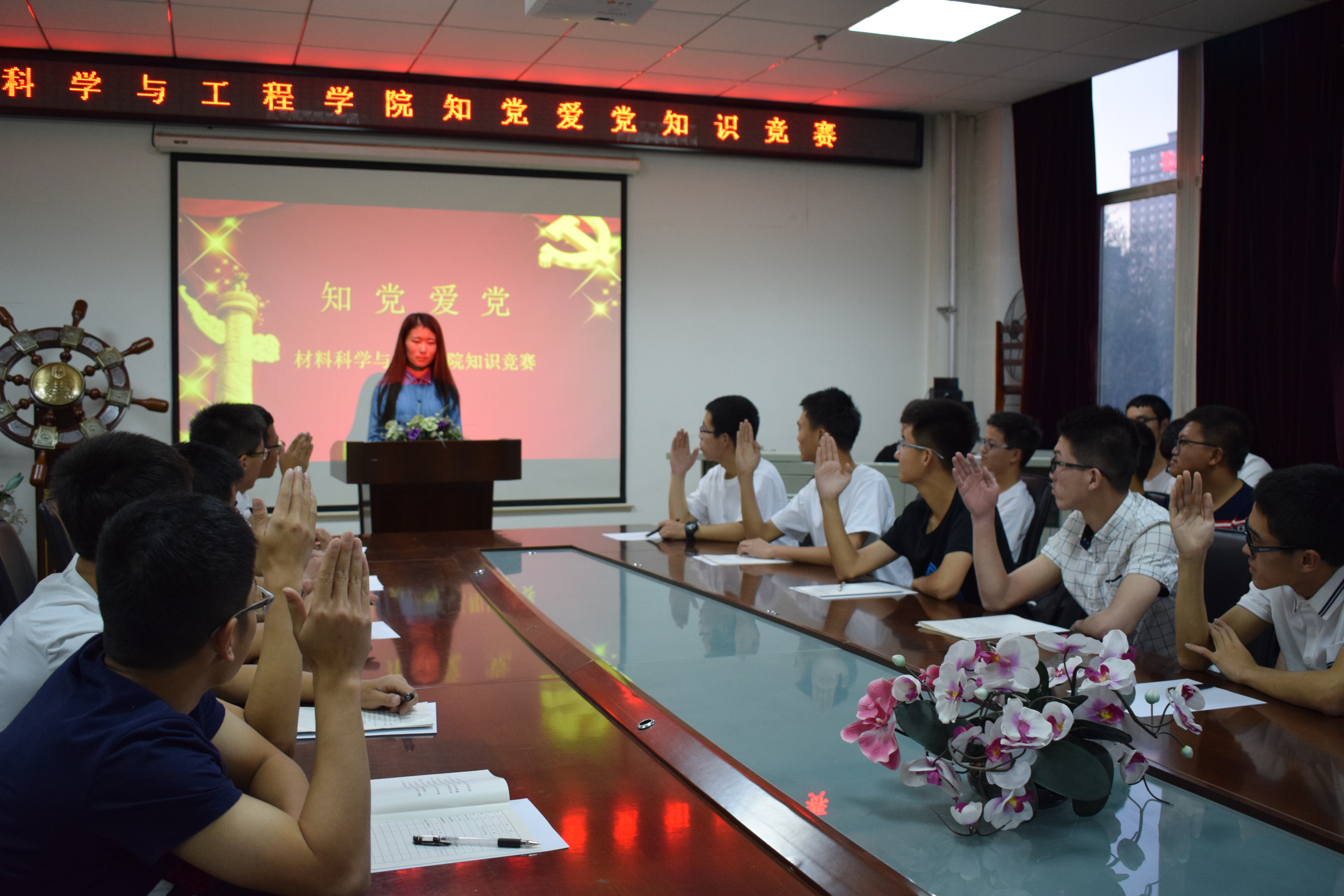 为传承革命情怀,发扬爱国精神,展现祖国风采,进一步推动我院校园文化的发展,加强学生的思想道德建设,提高学生的综合素质,培养广大学生的思维创新能力,展现当代大学生风华正茂的精神面貌,材料学院于6月3日开展“知党爱党,共圆美好材子梦”为主题的知识竞赛活动。经过三天初赛、复赛的筹备与比拼,于6月7日在逸夫机械材料馆410室举办了决赛并对优秀的同学进行了表彰。材料学院团委书记兼2013级辅导员张本龙出席此次活动。