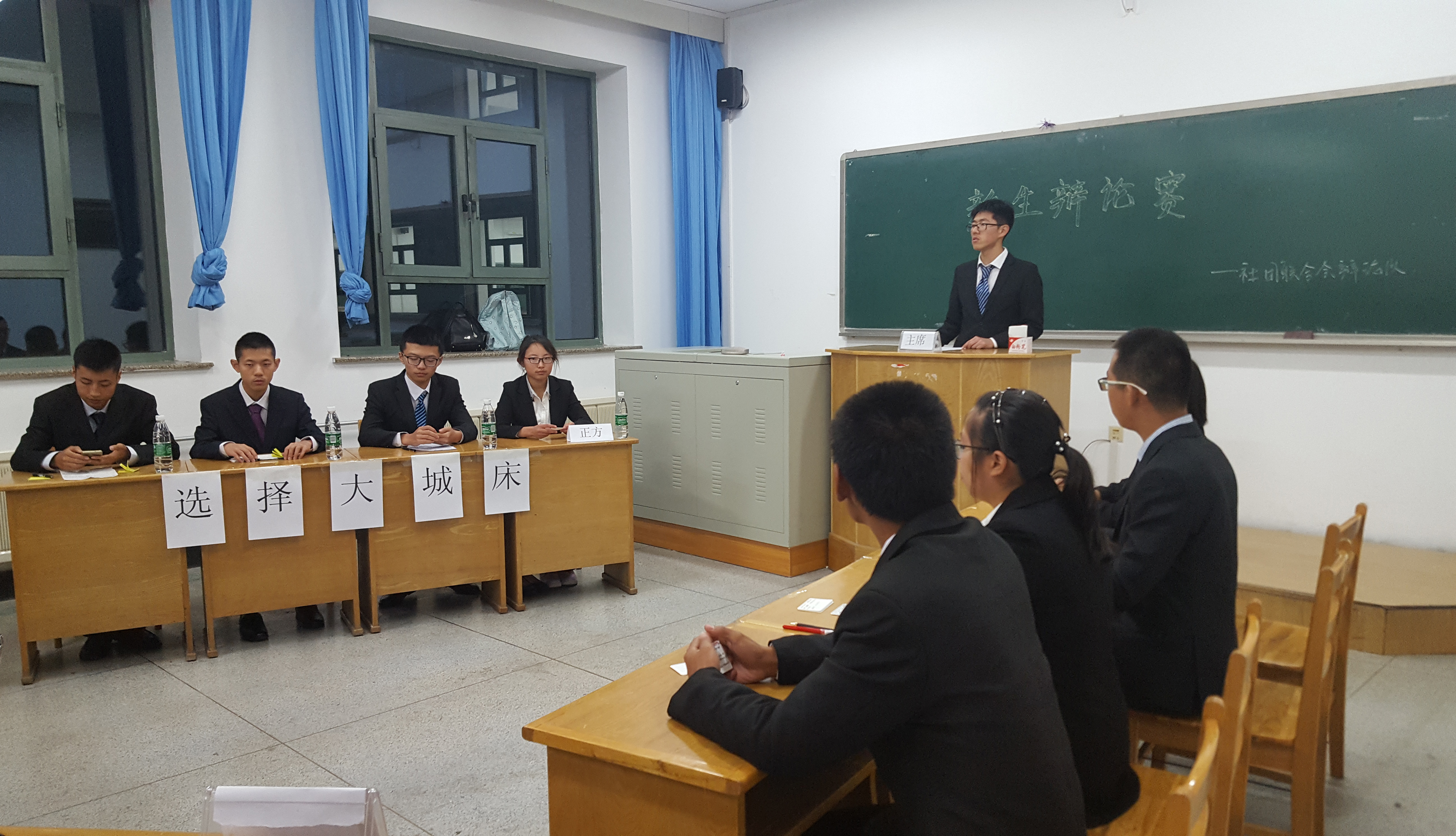 此次比赛由社联主席团成员分别在各赛场担任主审,社联副部及2015级优秀辩手担任评审。在此次首轮比赛中,分别由5班迎战13班,7班迎战14班,6班迎战9班,4班迎战12班。辩论场上,选手们据理相争,你来我往,毫不相让,在赛场上展现了自己的口才与思辨能力。辩论赛期间涌现了一个又一个有个性的辩手,虽然他们当中许多是第一次参加辩论赛,但他们的表现却非常出色,为自己的队伍赢得了经久不息的掌声。最终,经过了一番激烈的舌战,5班,7班,6班和12班分别取得了各自比赛的胜利。