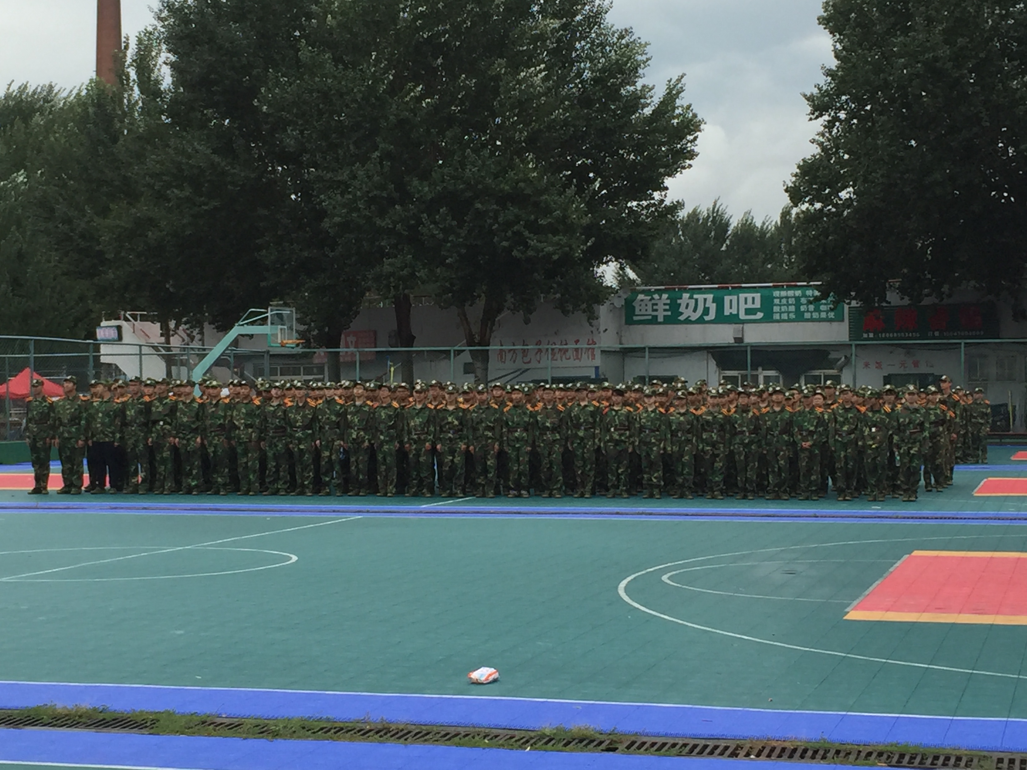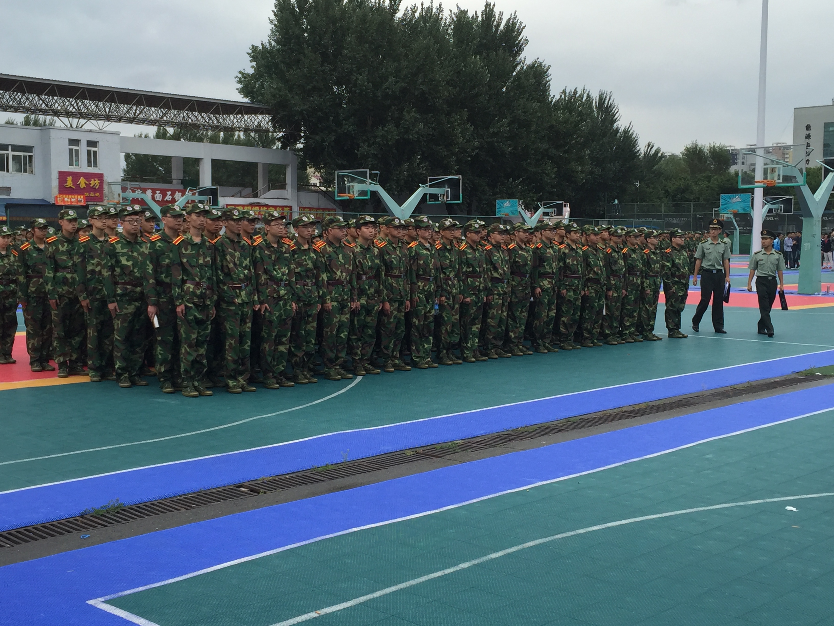 为了锻炼新生意识,增强新生身体素质,8月25日,材料学院新生在篮球场迎来了大学中的第一节必修课--军训,2016级辅导员严冬莅临军训现场。