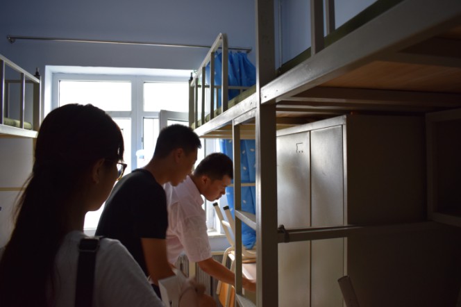 首先,由严冬老师带领大家前去新生公寓,与门卫工作人员协商后借来新生宿舍钥匙。为了让每个新生都能轻松并准确地找到自己的床位,严冬老师指导迎新志愿者们把床位卡贴在衣柜左上角的位置,并亲自向大家示范。随后,学团委成员在分工完毕后,开始贴床位卡工作。在每次帖过后,大家都会仔细检查床位卡是否粘贴准确、牢固,争取做到快速精确的完成此次任务。最终,在严冬老师的带领下,此次工作顺利完成。