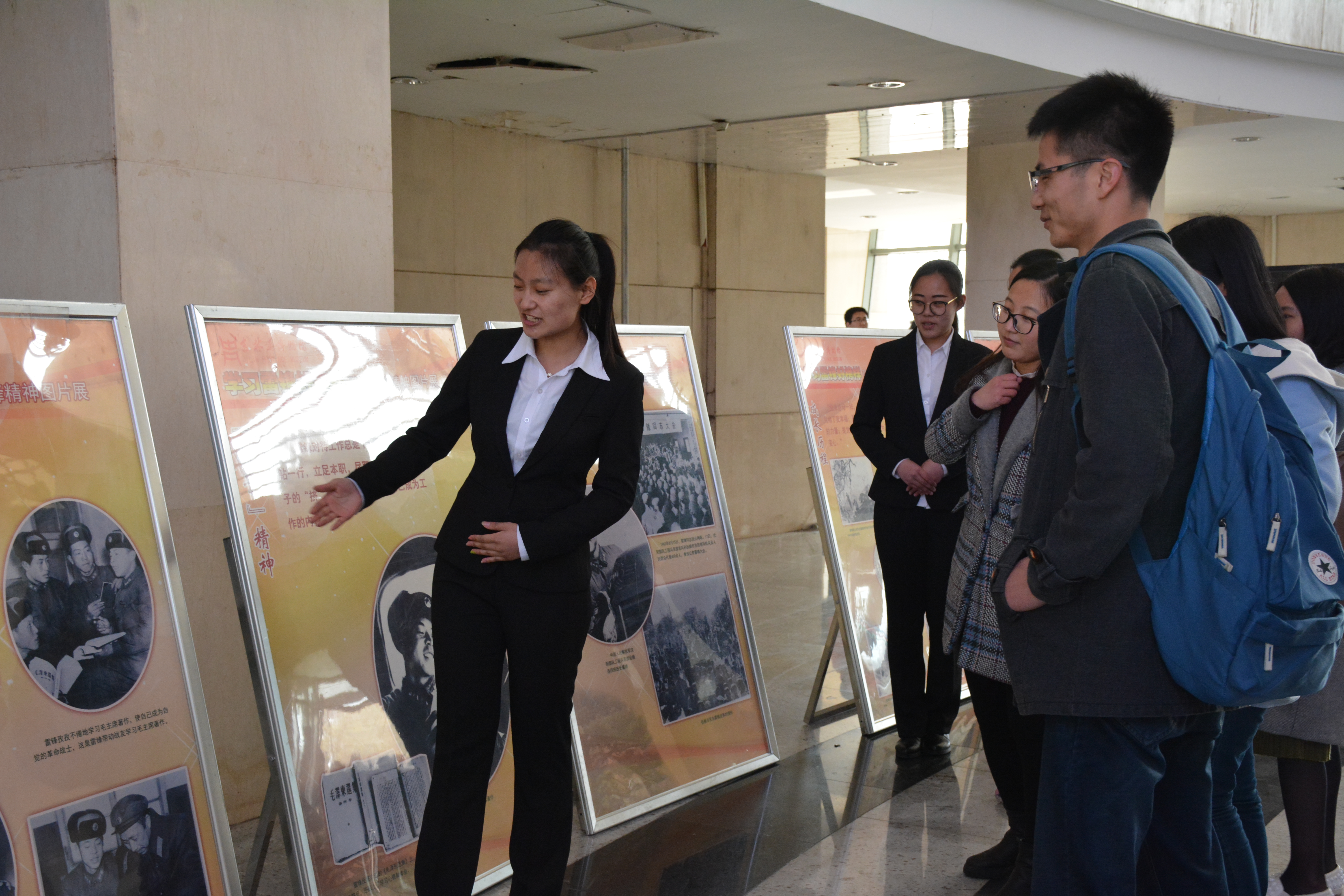 本次图片流动展所展列的近百张雷锋照片均为吉林省博物馆珍藏,一张张历史照片生动形象地描绘出雷锋当时生活工作的画面,展现了雷锋同志乐于奉献、无私助人的先进事迹。于4月14日上午,吉林省博物馆讲解员及交通学院雷锋讲解员来到活动现场,为观展的同学们悉心讲解,让同学们能深入了解这些图片的背景及其所蕴含的精神,讲解员们也用自身为例践行了雷锋乐于奉献的精神,彰显了志愿爱心。同学们均积极响应本次活动,前来观展了解雷锋生平事迹。