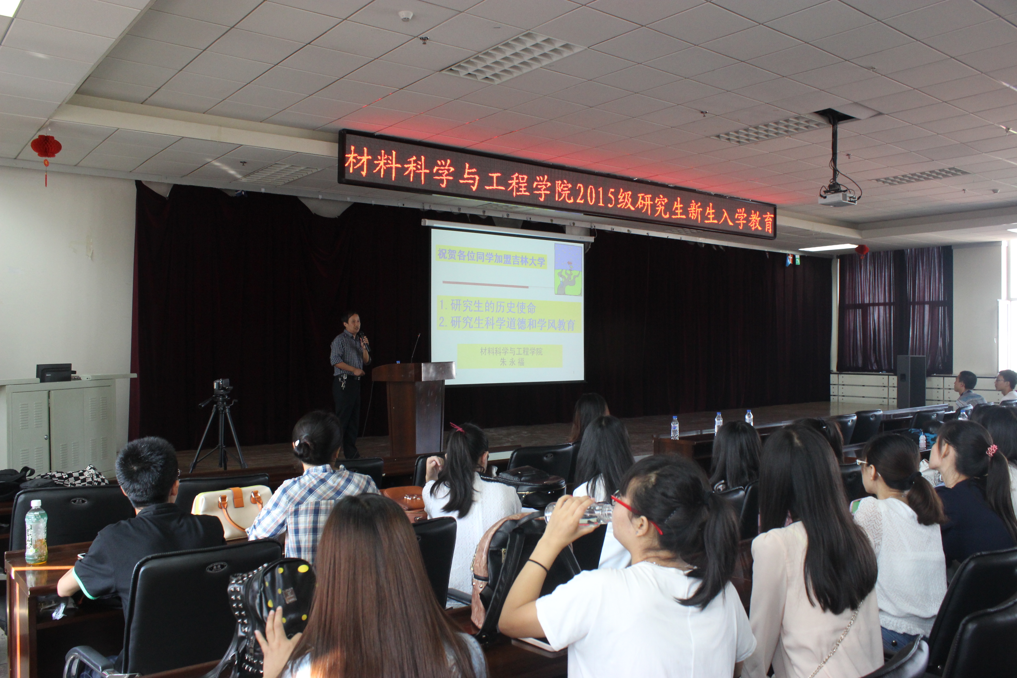 研究生科学道德和学风教育工作实施办法》(校研院字〔2014〕47号)精神及相关要求,加强研究生科学道德和学风教育工作,我院于9月1日8:30在逸夫机械材料馆八楼报告厅对全体2015级博士、硕士研究生进行了科学道德与学风教育宣讲会。材料学院副院长朱永福教授、党委副书记于雅琳老师、研究生办公室秘书刘徽老师出席会议。2015级全体博士、硕士研究生参加了本次宣讲会,会议由材料学院副院长朱永福教授主持。