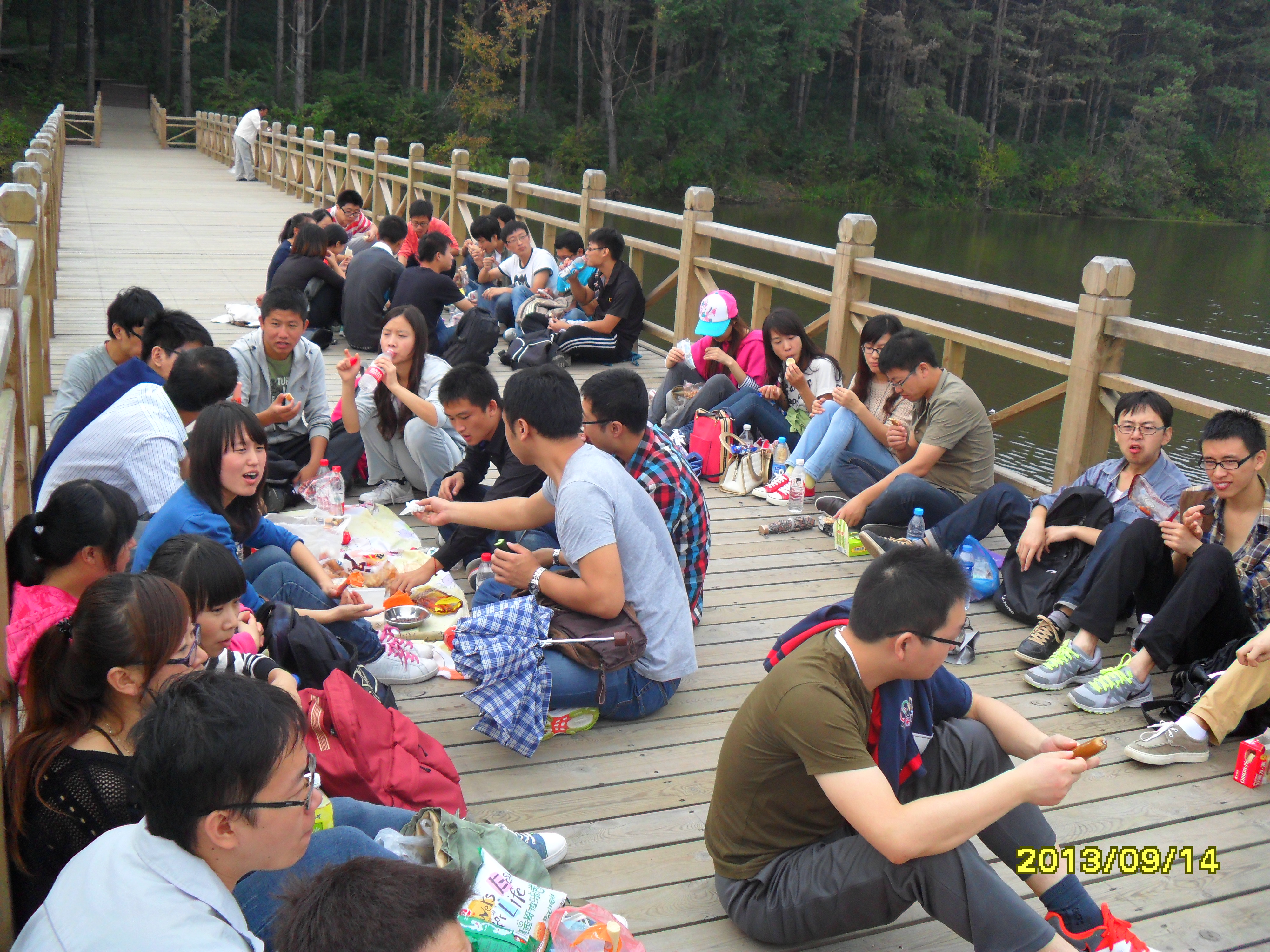 材料学院研究生学团委在组织活动前对行程设计、人员分配、安全工作都做了精心的准备。同学们按照预先设定的路线徒步行走,走过林间的小路、木板桥,路过长堤、铁塔,大家沉醉于自然的美丽,纷纷合影留念,中午时,在瓦萨桥休息并进行午餐,补充体力之后继续上路。下午,经过长距离跋涉的同学们体能都有所下降,大家以喊口号、唱歌等方式相互激励,相互搀扶着继续坚持,在下午4时,所有队员顺利到达公园正门,完成此次徒步。