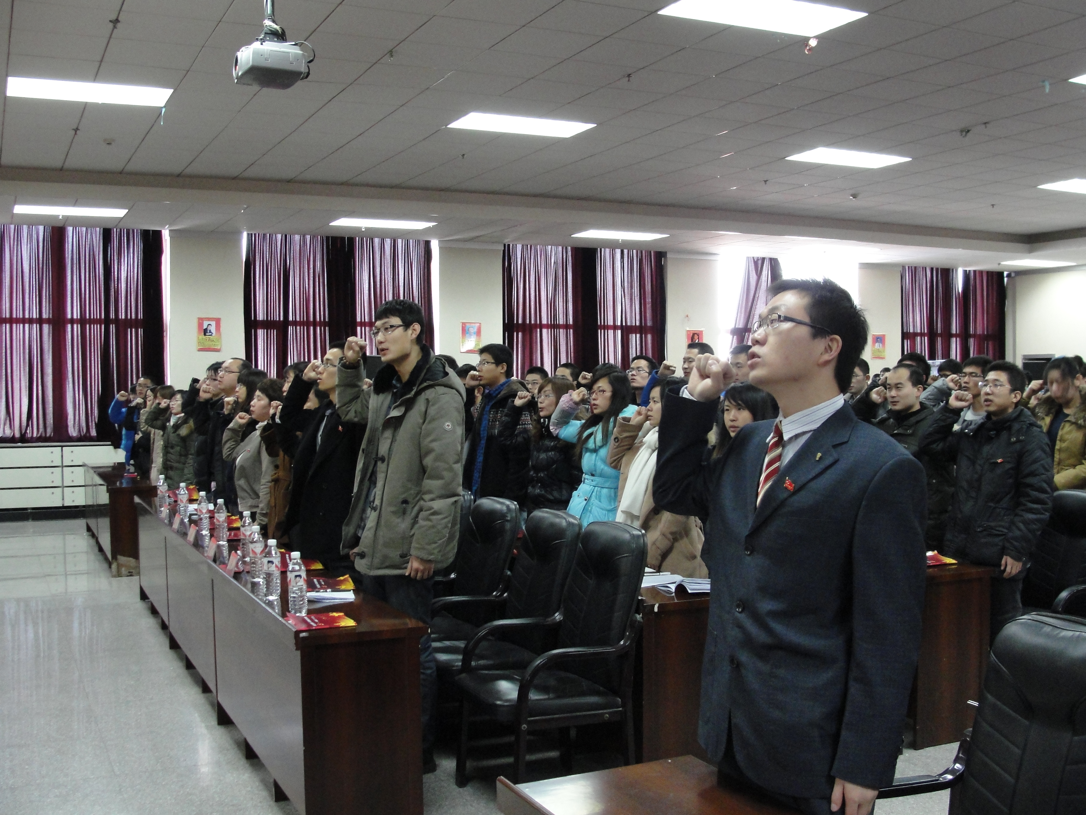 大会首先以视频的方式回顾了从新中国成立以来,党领导人民改革开放,科学发展,坚持中国特色社会主义制度,走中国特色社会主义道路,为了国家强盛和民族伟大复兴而不断奋斗的光辉历程。视频同时还展示了本次党建活动期间支部成员们在各个校区采集信息的掠影和人们对伟大祖国的美好祝愿。随后,全体与会人员集体合唱《歌唱祖国》并重温了入党誓词,将本次大会推向高潮。周书记代表学院党委发表了热情洋溢的讲话,他鼓励全体研究生党员要与时俱进、开拓创新,不断提升自身素质,保持党员的先进性,潜心科学研究,积极投身实践,在党的十八大提出的“五位一体”发展战略中,贡献自己的一份力量。