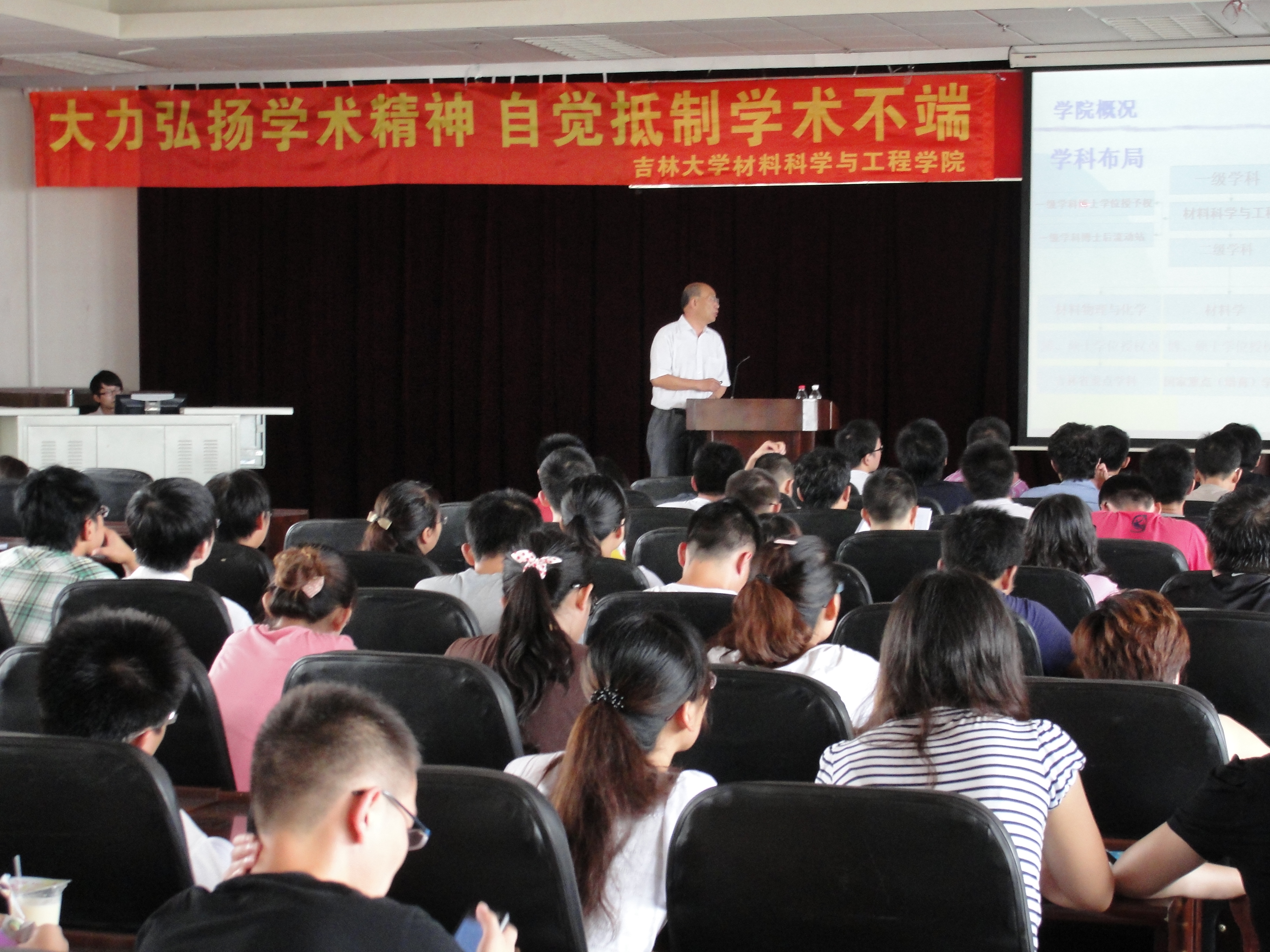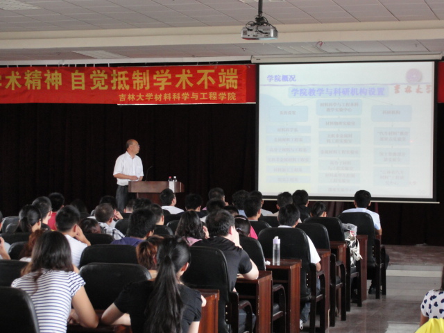 828上午,我院在逸夫机械材料馆八楼成功举办“学术道德和学风建设”主题讲座。材料学院学术委员会主任、博士生导师姜启川教授,研究生办公室秘书刘徽老师,以及全体博士、硕士研究生新生参加了讲座。本次讲座由材料学院学术委员会主任、博士生导师姜启川教授主讲,研究生办公室秘书刘徽老师主持。