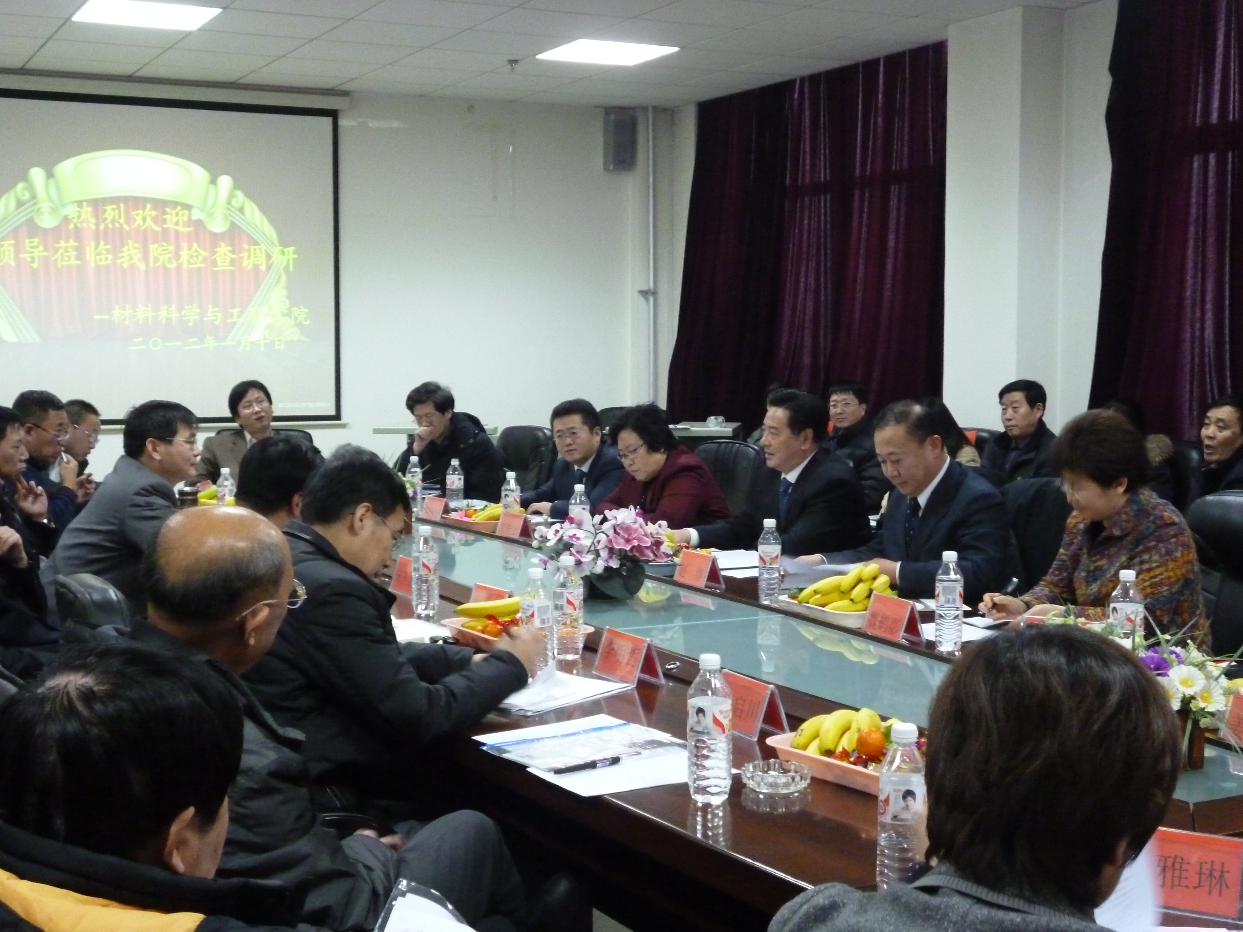 为贯彻落实《关于进一步深化学校管理体制改革的若干意见》精神,全面总结“十二五”开局之年的各项工作,进一步掌握年度工作目标完成情况并及时了解学院相关重点工作的推进情况,按照学校对2011年度工作进行检查调研的总体安排,2012年1月10日下午2点,在材料馆410会议室,材料学院召开了2011年工作总结汇报会。李元元校长亲临指导,常务副校长赵继教授、宋玉泉院士、校办主任刘桂云、第二检查调研组全体成员,材料学院党政班子成员、二级教代会代表、学术委员会委员、学位评定委员会委员、教学工作委员会委员、党支部书记、学生代表出席会议。会议由行政副院长、二级教代会秘书长吴新明主持。