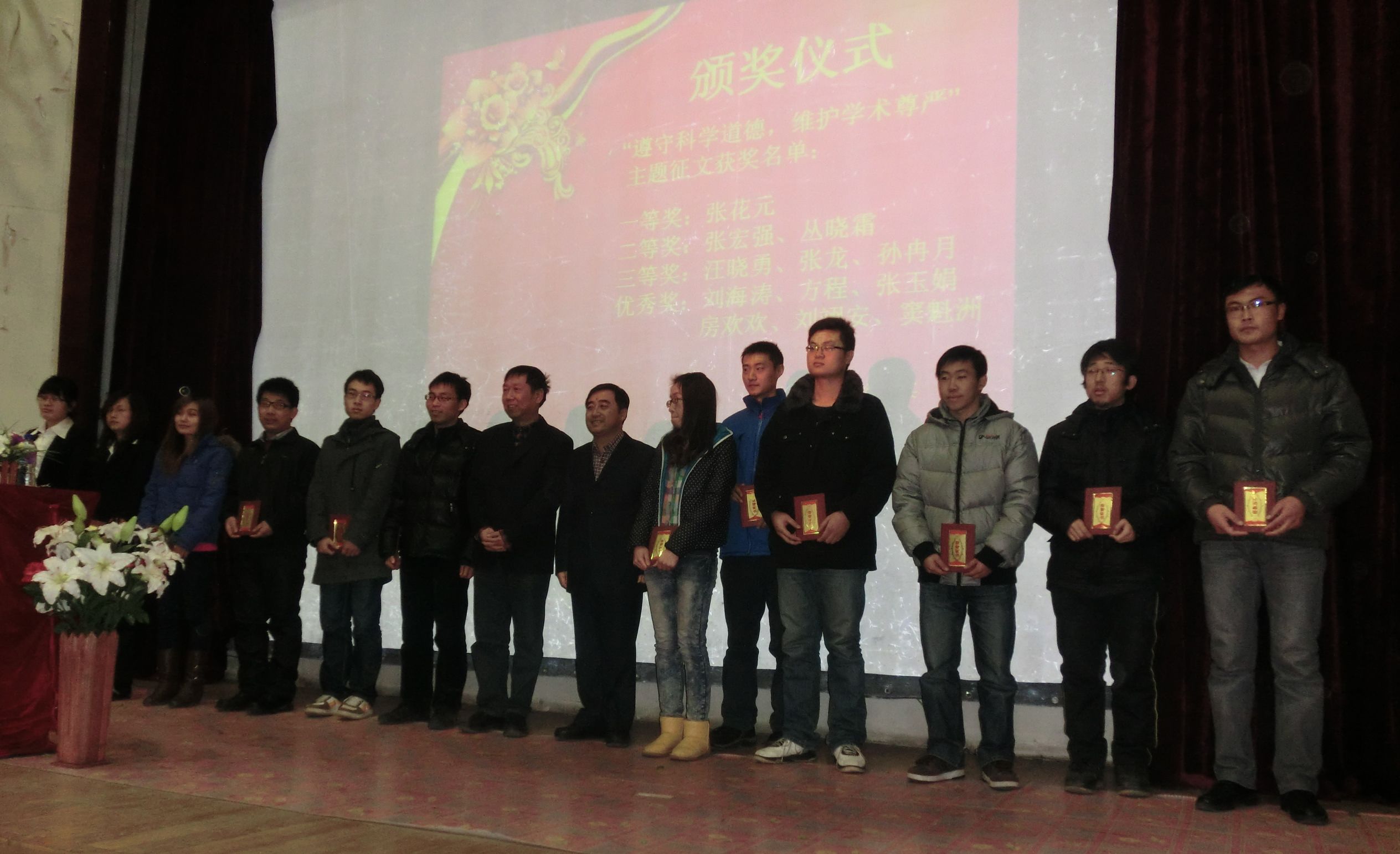 此活动的颁奖仪式于1125日下午在南岭校区五教报告厅与学院 “恪守学术道德 加强学风建设”主题系列活动之“去伪存真,尊重科学”专题讲座一并举行。材料学院党委书记周岩松,常务副院长博士生导师蒋青教授出席仪式,为获奖者颁发荣誉证书和奖品。