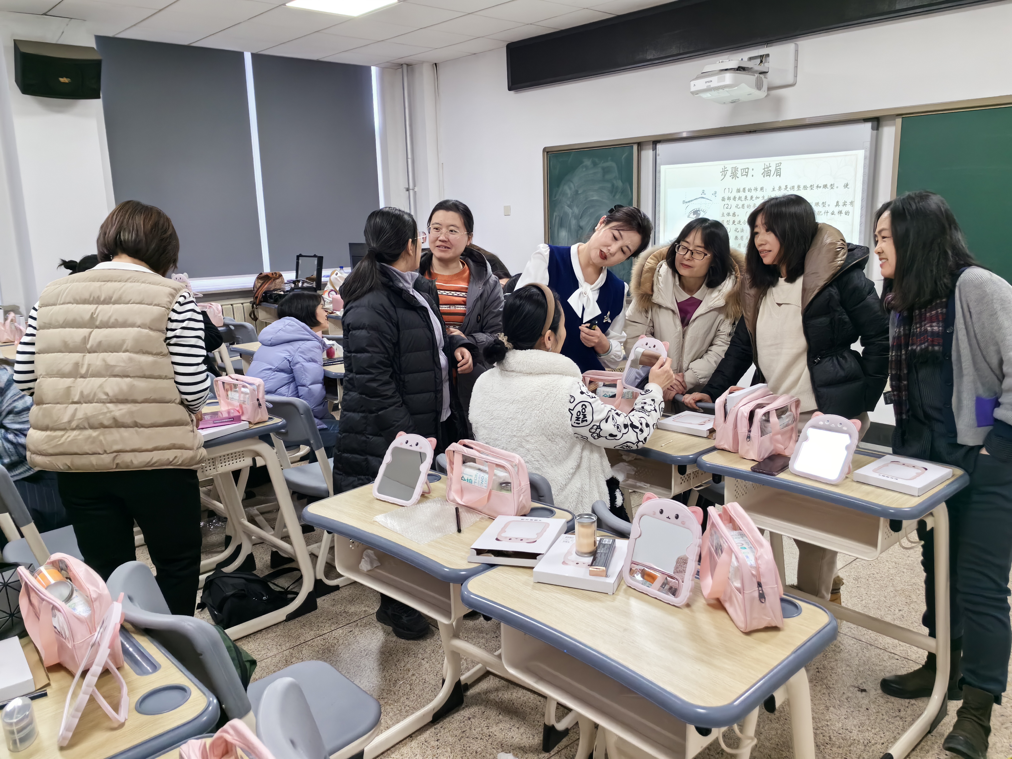 女教工精神文化生活,活跃学院文化氛围,学院于2024年3月6日组织举办“人面桃花相映红”化妆体验培训活动,帮助女教职工们学习化妆技巧,提升自我形象,展现女性风采。