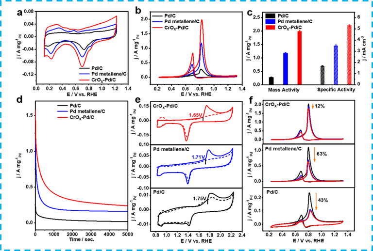 图2.CrOx-Pd金属烯的甲醇电氧化性能测试
