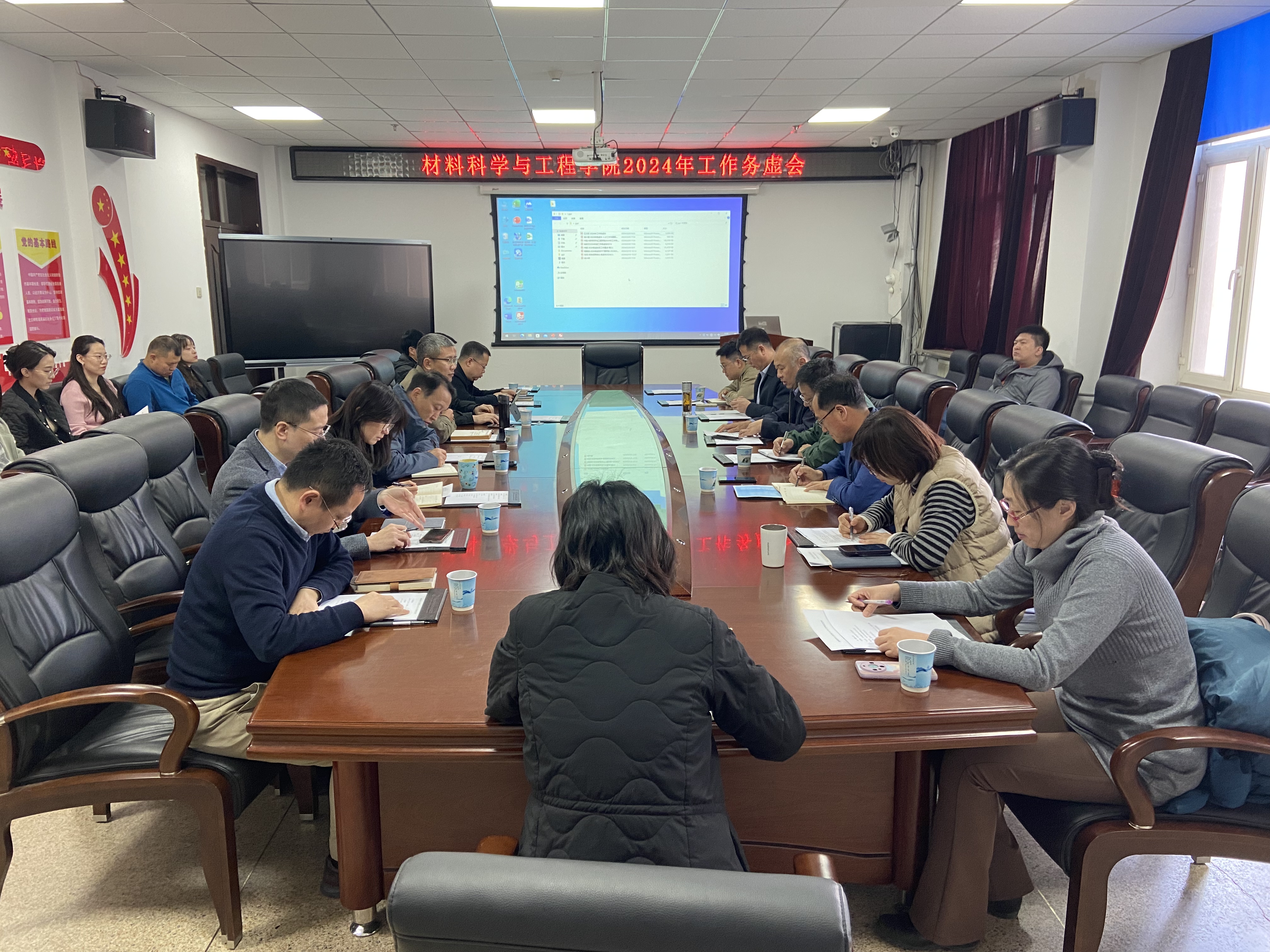 在材料馆410会议室召开2024年工作务虚会,以“深入布局工科集群高质量建设,加快发展材料学科新质生产力”为主题,聚焦学校党委重大部署,围绕学院年度重点任务,全体班子成员结合分管工作开展研究探讨。学校党建工作联络员刘炳恩到会指导,会议由学院党委书记刘远主持。