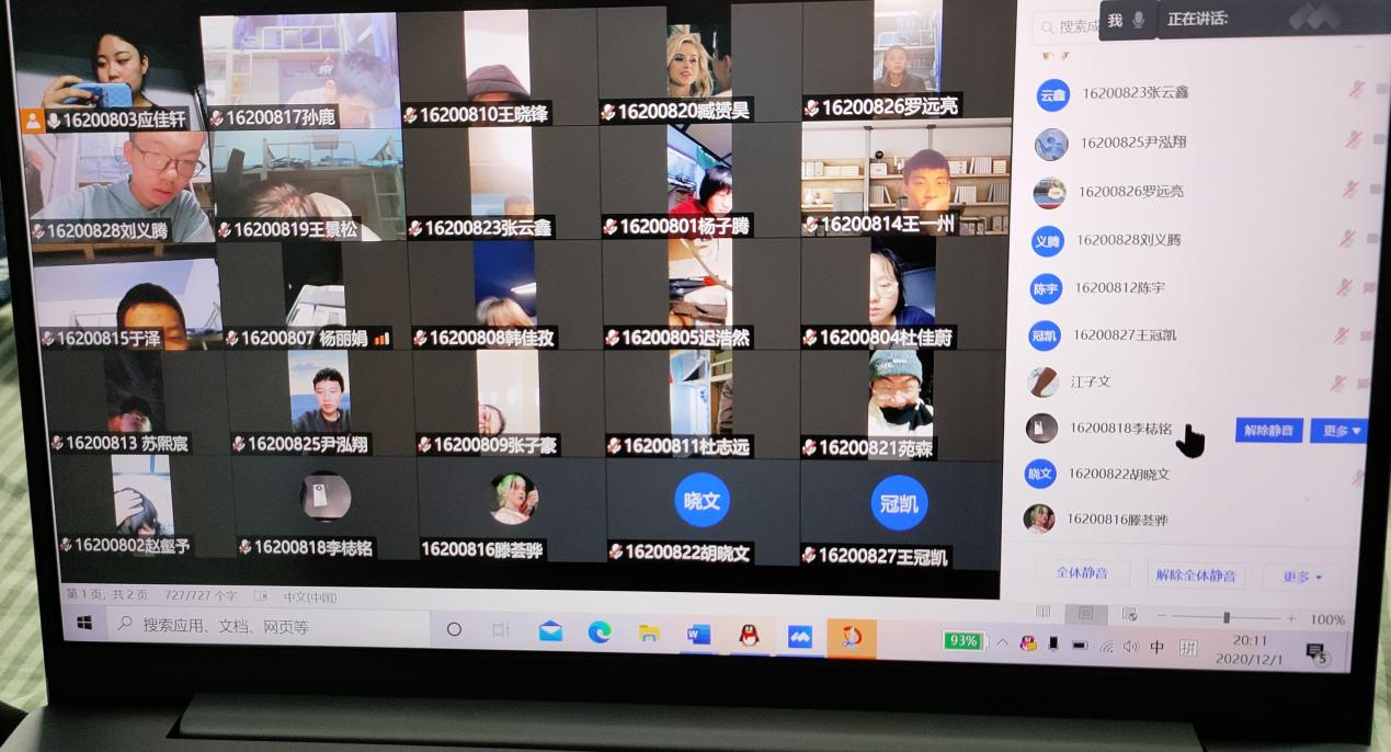 2020级各班于2020年12月1日20:00组织线上学习心得分享班会,2020级学生全员参加此次活动。