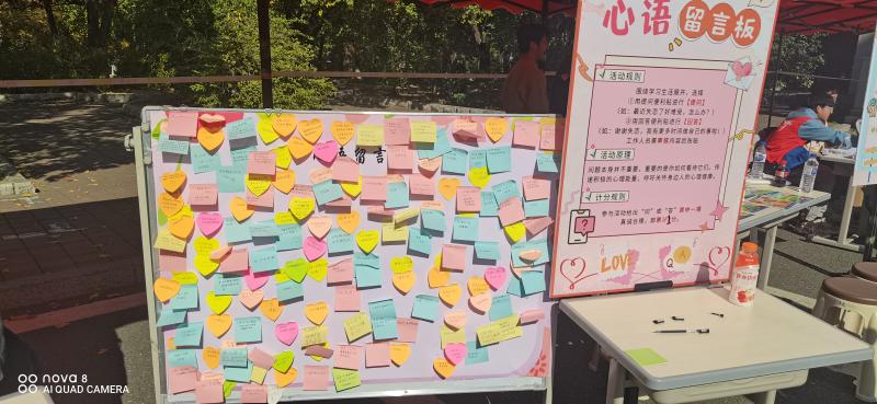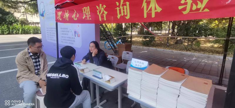 承办,在南岭校区文化活动中心门前举办。学校学生心理健康指导中心白仲琪老师、张琳老师,学院本科生辅导员严冬老师全程参加了本次活动,本次活动面向南岭校区全体学生开展。