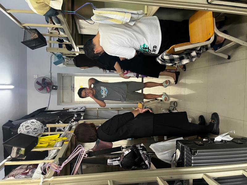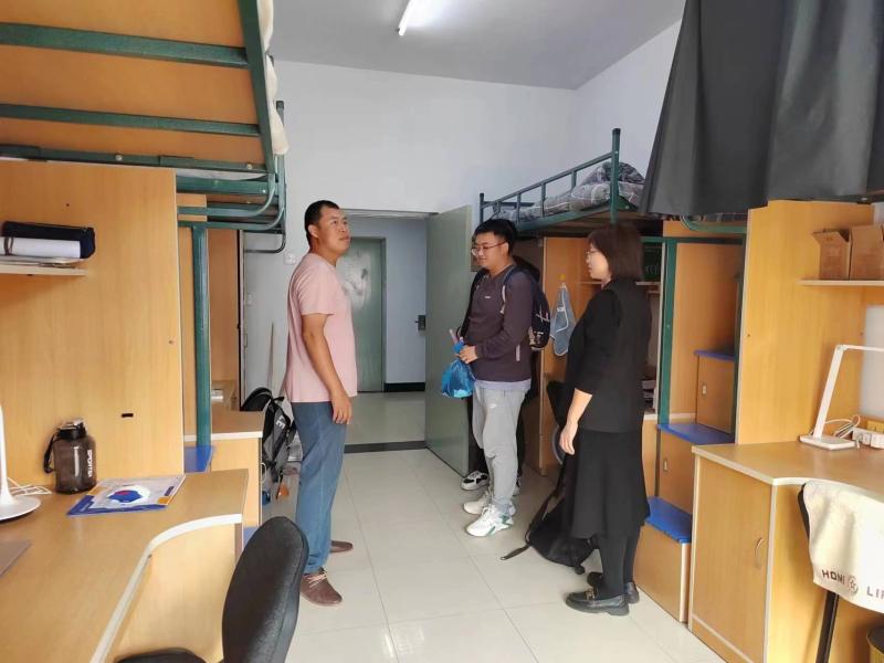 为进一步深入了解学生思想、生活及学习情况,加强寝室文明建设,扎实做好寝室安全工作,学院党委副书记兼副院长华蕊老师、学院学生工作办公室全体辅导员老师于9月27日分别来到学院本科生寝室,走访慰问在校学生并开展寝室安全检查工作。