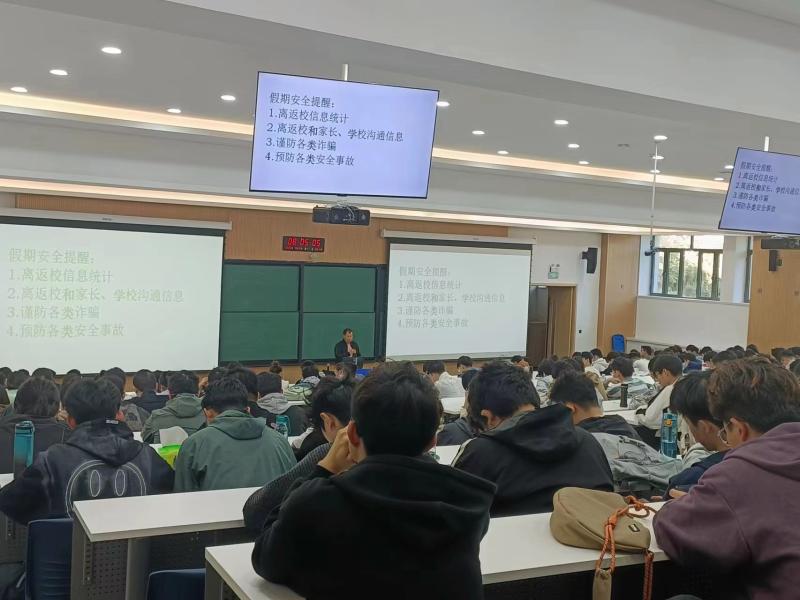首先,严老师对同学们的课堂出勤情况进行了解,并和大家沟通了大三学年专业课程学习的重要性;随后,严老师结合学院实际情况和以往工作经验,对大三学年同学们的学习及生活提出了建议,并简要介绍了2020级大四年级学生的毕业去向概况,并以次建议同学们在学期伊始充分把握好自己、珍惜机会、坚定自己的理想和选择,并为之继续努力奋斗;最后,严老师就十一假期安全问题对同学们进行提醒,大家在校和外出期间要始终将人身安全放在第一位,同时要谨防易发生的网络和电信诈骗、退改签诈骗、演唱会诈骗等骗局,保护好自己的财产不受损失。