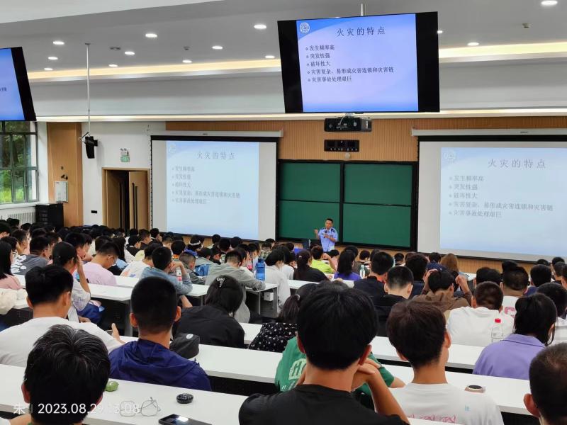 保卫处东区保卫办公室消防科刘海江老师、治安科田刚老师主讲,学院2021级、2023级材料类专业辅导员严冬老师和全体2023级本科生新生参加了本次活动。