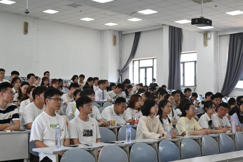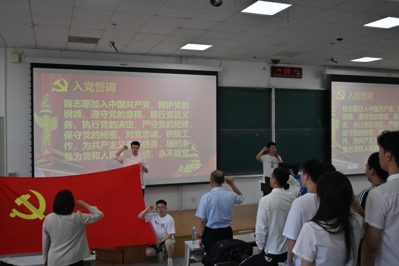 于2023年6月15日,在南岭校区逸夫楼A411报告厅组织开展了毕业生主题党课暨重温入党誓词活动。学院党委书记刘远老师、学院党委副书记兼副院长华蕊书记、学院本科生辅导员严冬老师、张晗禹老师,以及全体本科毕业生党员参加本次活动,学校党建工作联络员刘炳恩受邀列席活动。