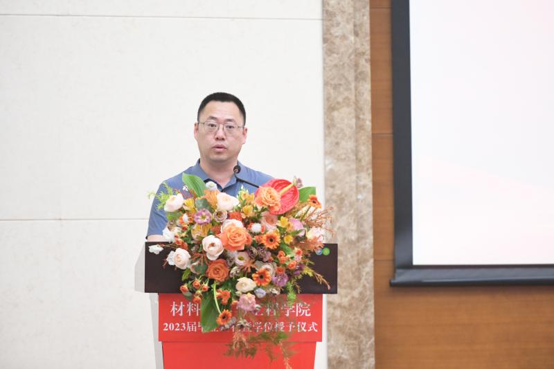 2023届毕业研究生代表张耀文同学发言,回顾在材料学院生活学习的三年时光,对蓬勃发展的的学院、对悉心教诲的师长、对辛勤养育的父母、对全体同学表达感谢。