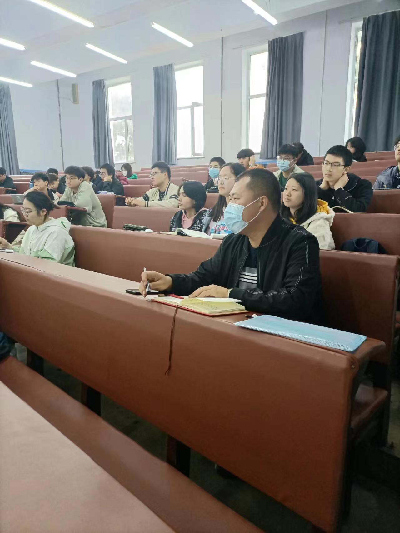五一假期后返校复学检查暨“课前十分钟”微思政:为了进一步了解学生返校及出勤情况,5月4日五一返校后第一天教学日,辅导员严冬老师来到学生课堂,与学生同上一门思政课。在本堂思政课前,严老师与任课教师白老师就学生出勤和上课情况进行交流沟通,下课后,严老师结合自身学习经历提醒同学们,作为工科大学生要重视思政课程,要注意自身理论素养的提升,这是把握个人成长方向的重要基础和指导,希望大家珍惜学习机会,不断提升理论素养,用所学的理论来指导实践。