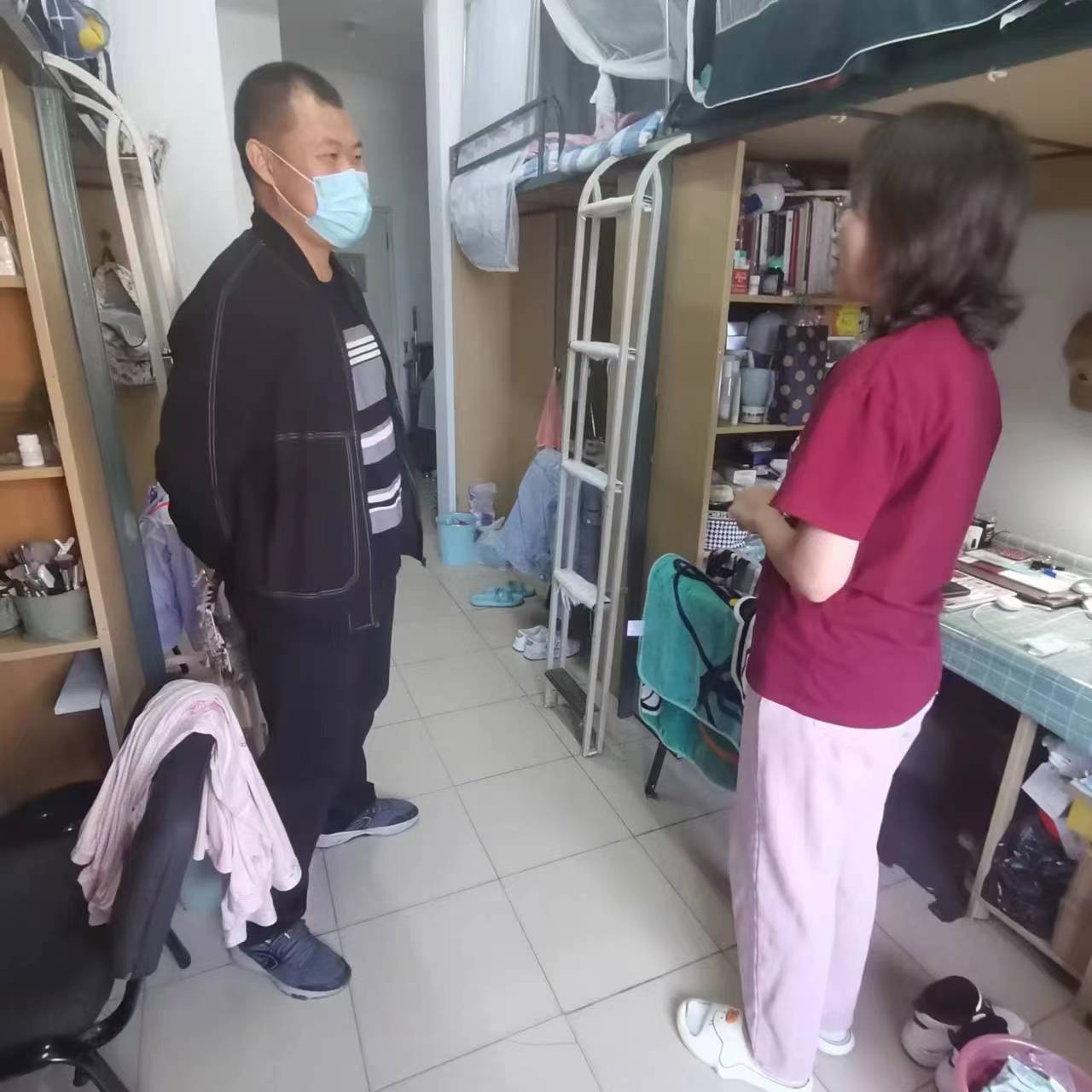 五一假期后寝室安全检查暨“寝室一小时”微思政:5月3日、4日晚,严老师在辅导员值班期间走访了南岭校区十一公寓男生寝室,开展了“晚点名”工作,并与未在寝室同学、家长及时沟通,了解未在寝室学生实际情况,同时提醒已返校同学要及时调整状态,尽快适应本学期后半段的学习和生活;5月6日下午,严老师与女生学生干部代表共同走访了南岭校区十二公寓女生寝室,一方面进一步了解学生返校情况、另一方面对女生寝室卫生情况进行督促和提醒,严老师在和同学们交流过程中,提醒大家假期后要收心学习,寝室卫生要注意保持,女生同学们要坚决避免使用违章电器,杜绝寝室安全隐患。