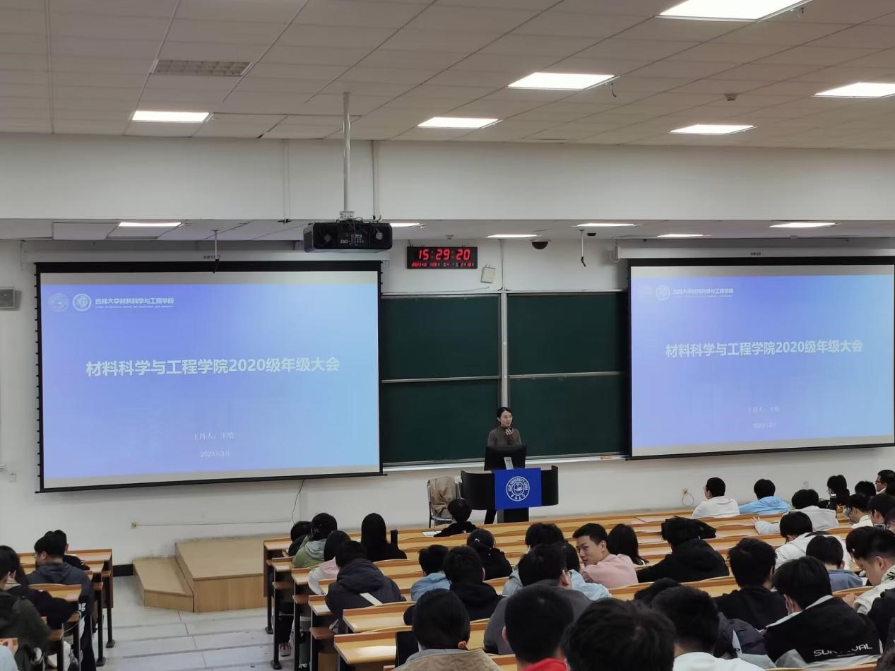 在逸夫教育大楼A206召开2020级学生的2023年度第一次年级大会。本次会议由2020级辅导员王晗老师主持召开, 2020级全体本科生参加。