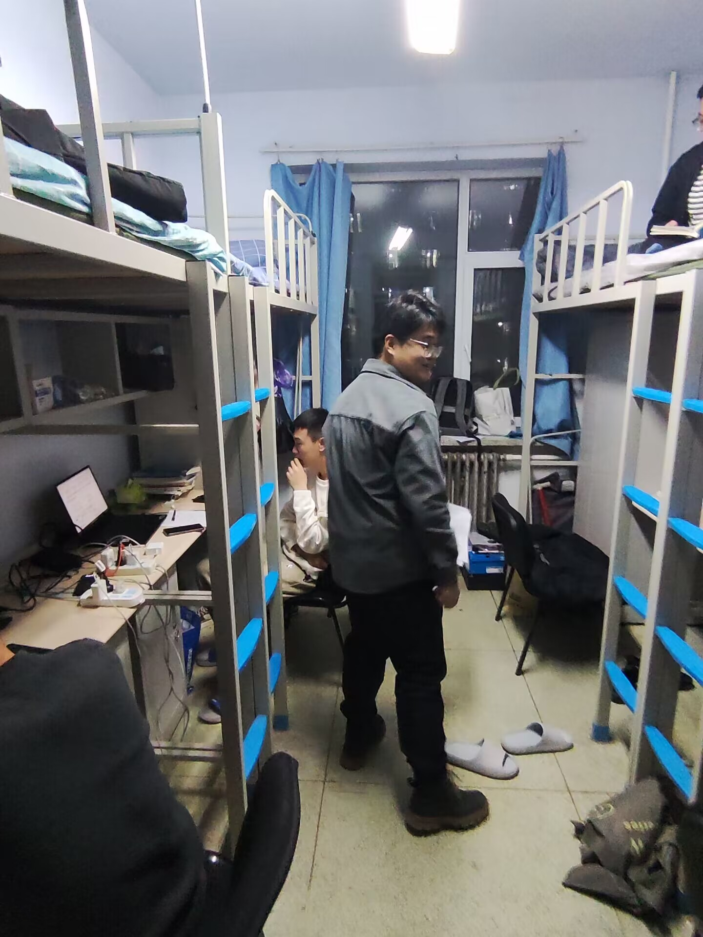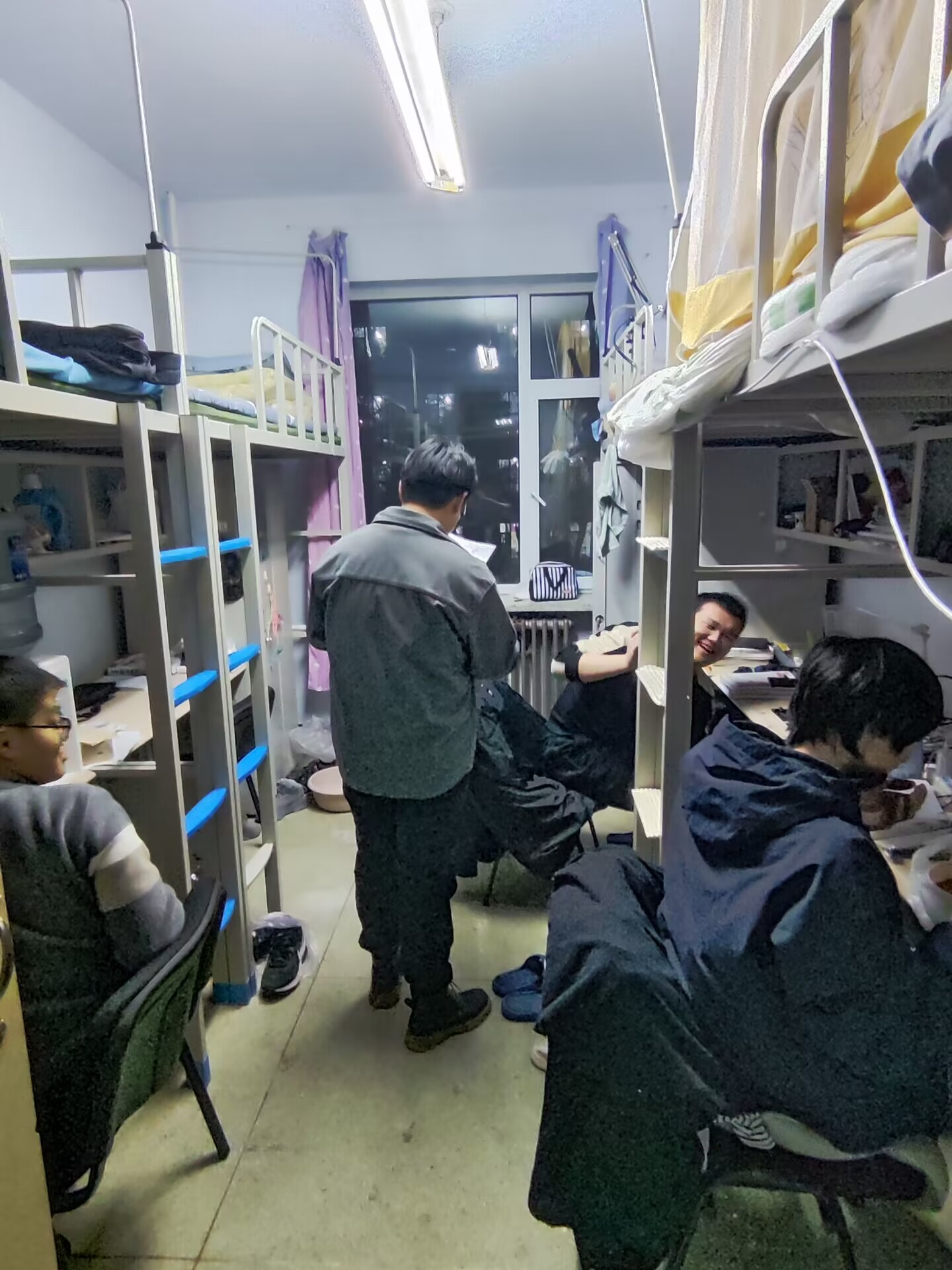 在走访过程中,张晗禹老师首先与学生交流了假期生活和学习情况,也解答了同学们对新学期的相关疑问,叮嘱大家要合理调整作息时间,有计划地进行返校期末考试备考以及新学期课程学习。此外,张老师提醒学生树立健康意识,当好个人健康第一责任人,同时对学生公寓安全隐患进行检查,重点摸排火灾隐患和其他违规情况,营造了安全整洁的寝室居住环境。