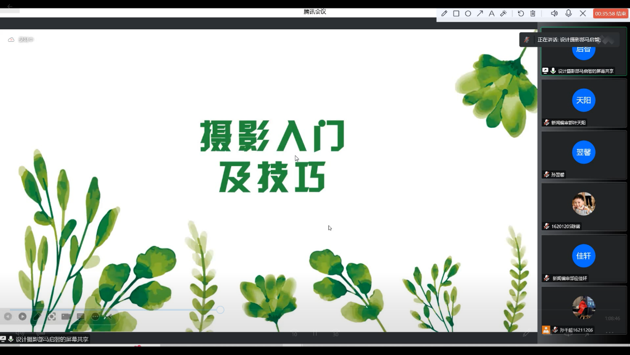 新媒体中心于11月11日晚7点,在腾讯会议线上召开了新媒体中心技能培训会。学院各学团组织部门代表以及新媒体中心全体工作人员参与本次培训会。本次会议由新媒体中心理事长陈诺主持