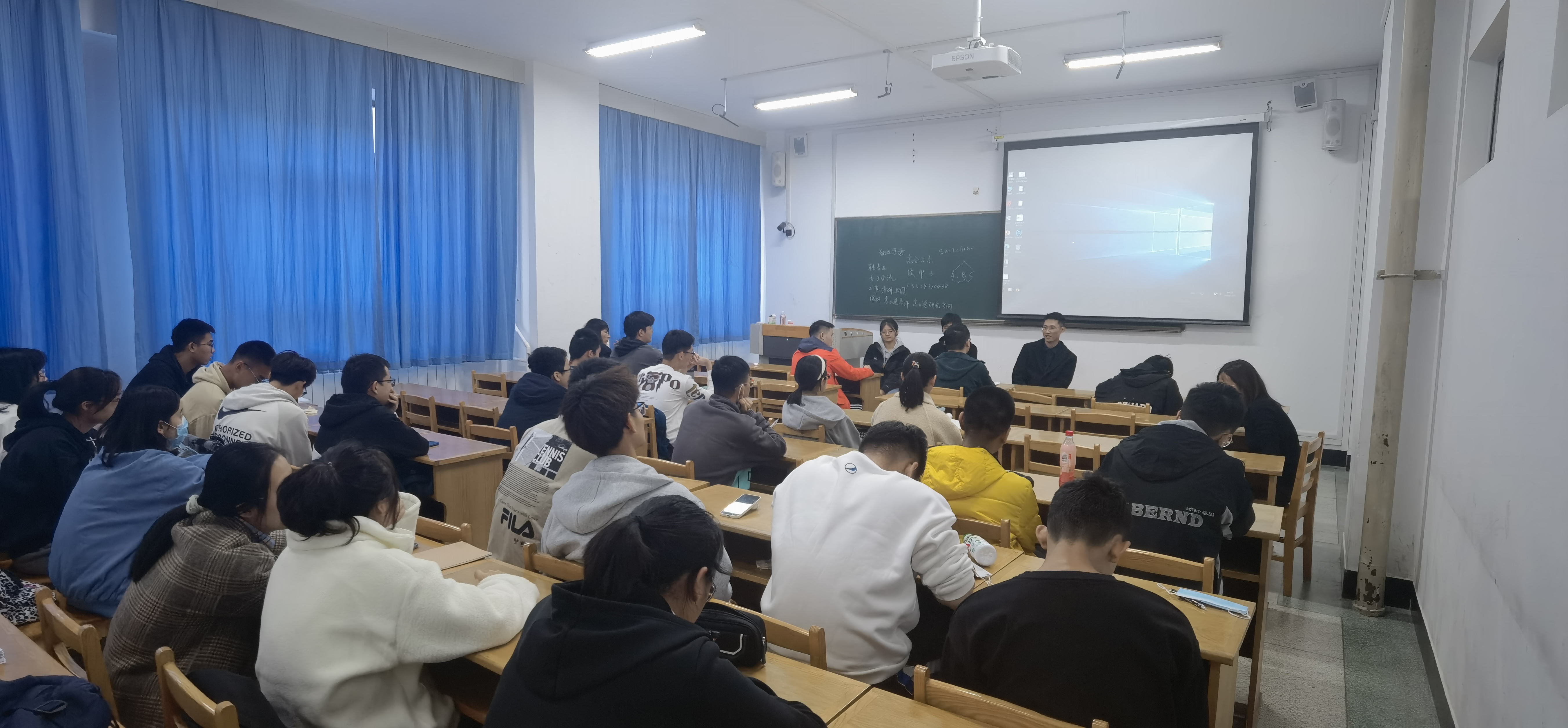 会议开始,同学们进行了自我介绍,接着,两位老师就大学生活应该如何学习、如何安排时间等问题进行了系统地梳理,使同学们明晰了大学的学习要求与学习目标。在提问环节,两位老师对同学们提出的问题进行了详细的解答。在见面会的最后,老师们表示,希望所有的同学都能找到适合自己的发展方向,无论选择读研或者就业,最重要的是及时付出行动,不要浪费大学的大好时光。