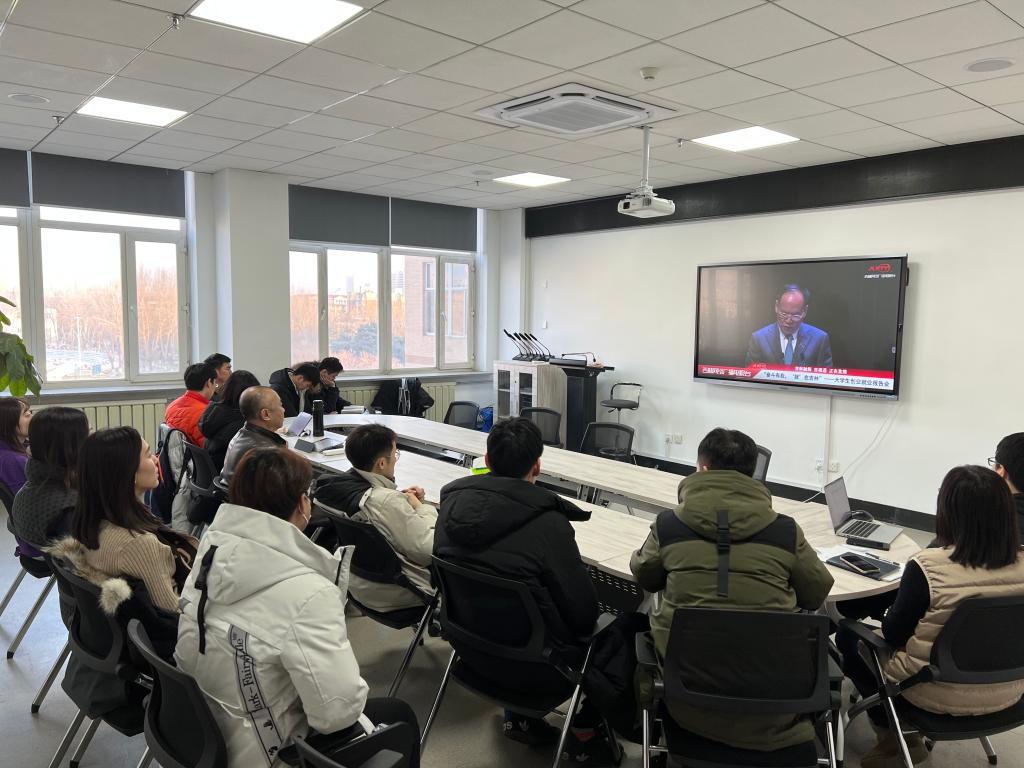 于2021年12月29日下午组织观看省委书记景俊海 “奋斗有我,‘就’在吉林”的专题报告会。院党委书记刘远、副书记曲贵文、华蕊及学院全体辅导员老师和本科、研究生毕业年级学生代表一同观看报告会,其余学生以寝室为单位分小组线上观看。