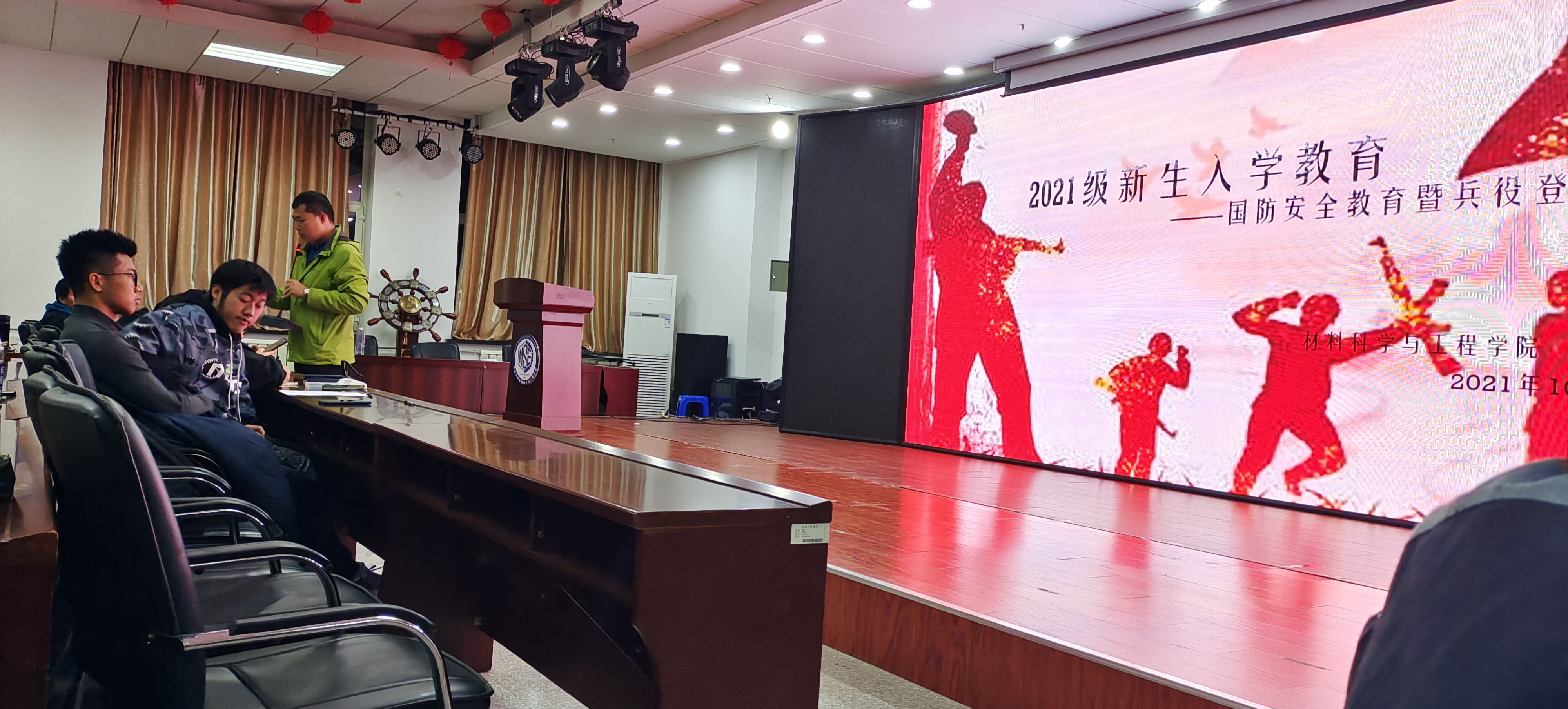 2021级辅导员严冬老师于10月29日在南岭校区逸夫机械材料馆召开2021级材料类学生国防教育暨兵役登记工作,会议由严冬老师主持,2021级材料类全体班委和全体男生寝室长参会。
