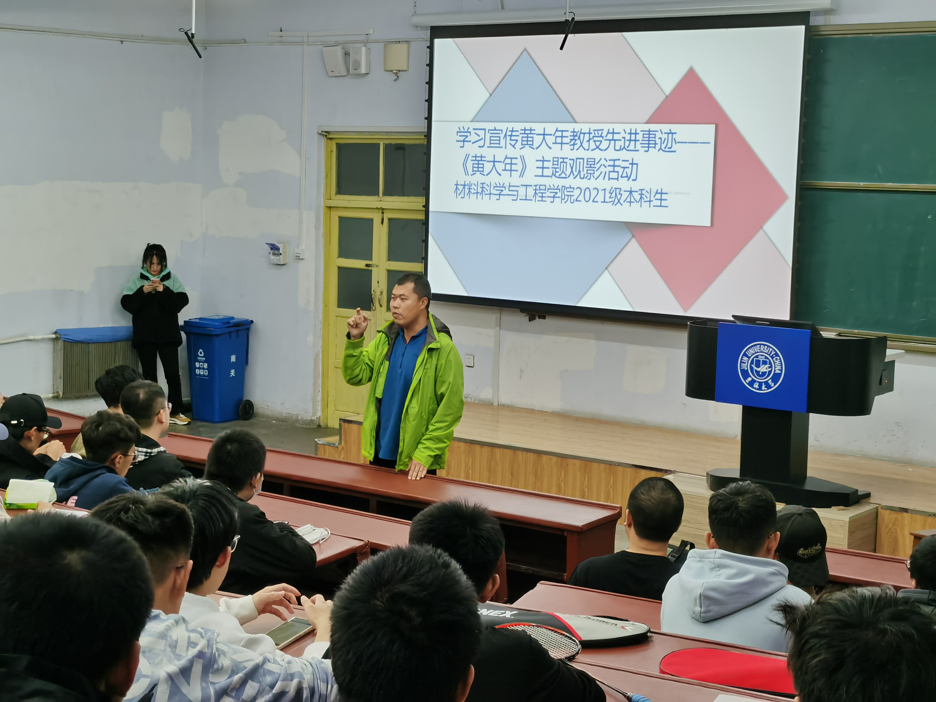 2021级新生入学教育工作方案》等相关工作要求,为了进一步做好新生同学的入学教育工作,深入贯彻习近平总书记对黄大年同志先进事迹的重要指示精神,感受黄大年同志淡泊名利、甘于奉献的高尚情操和心有大我、至诚报国的爱国情怀,激励同学们始终保持奋发有为、昂扬向上的精神状态,我院于10月27日面向2021级材料类本科生开展学习宣传黄大年教授先进事迹暨《黄大年》主题观影活动。