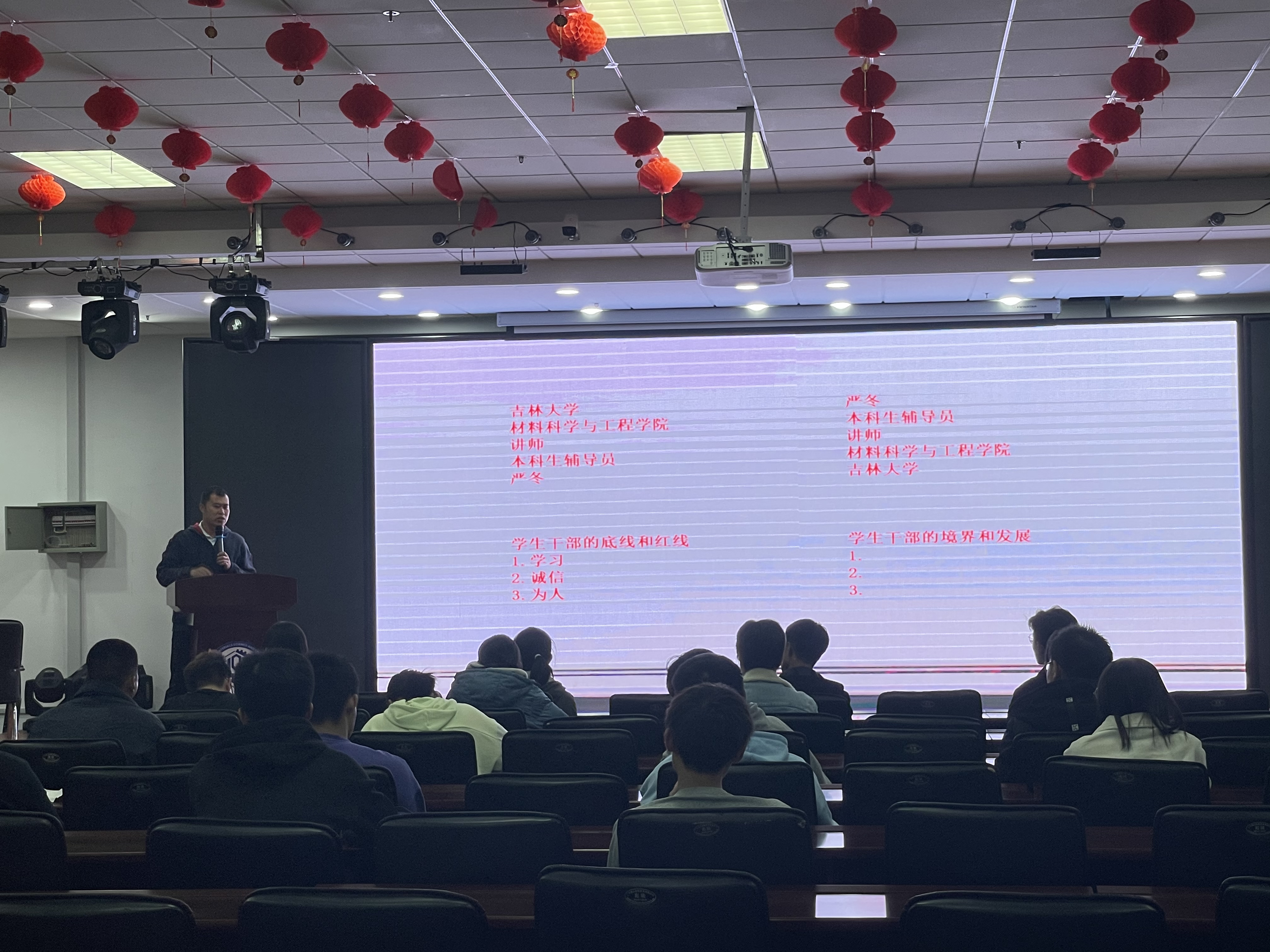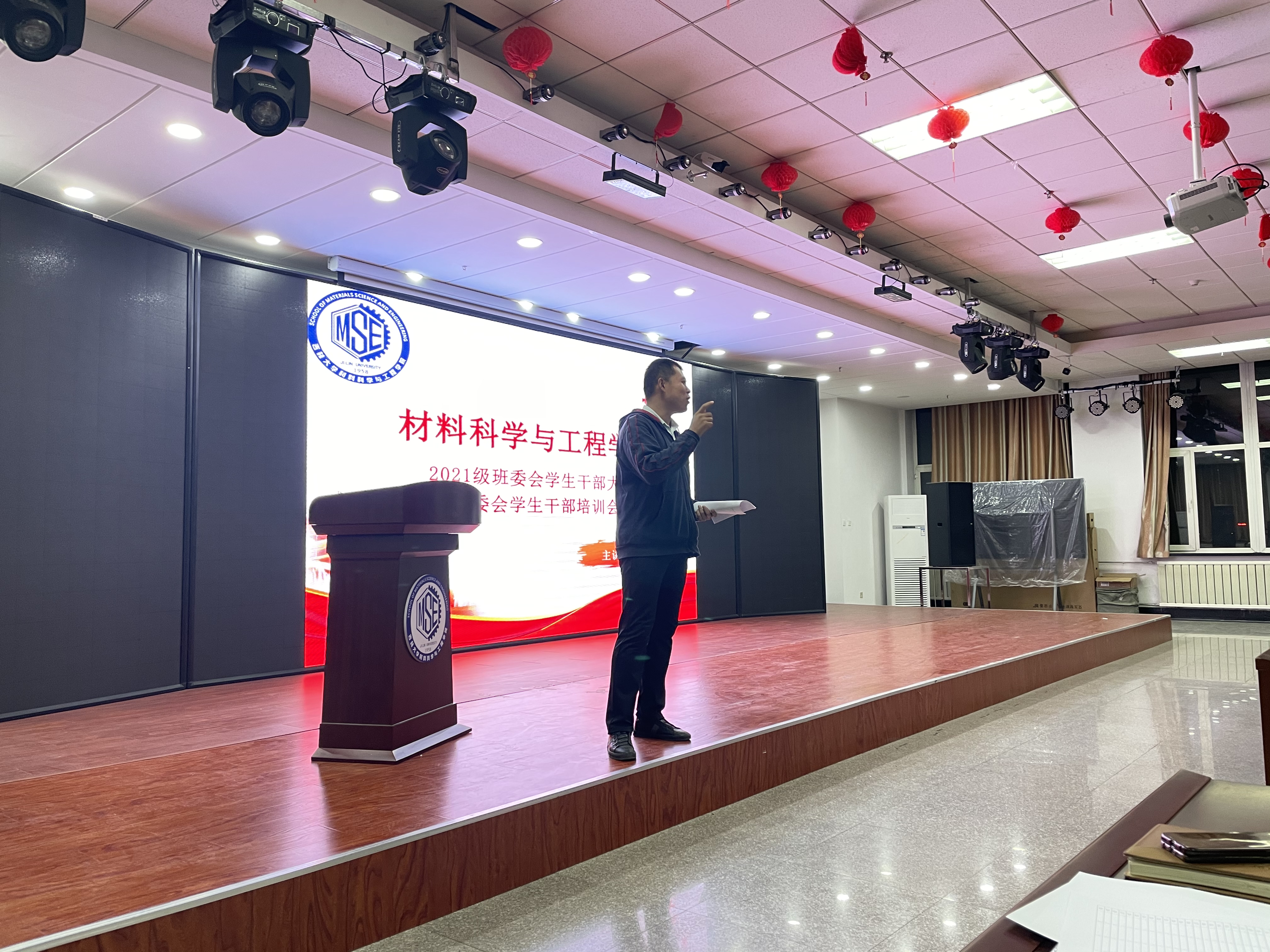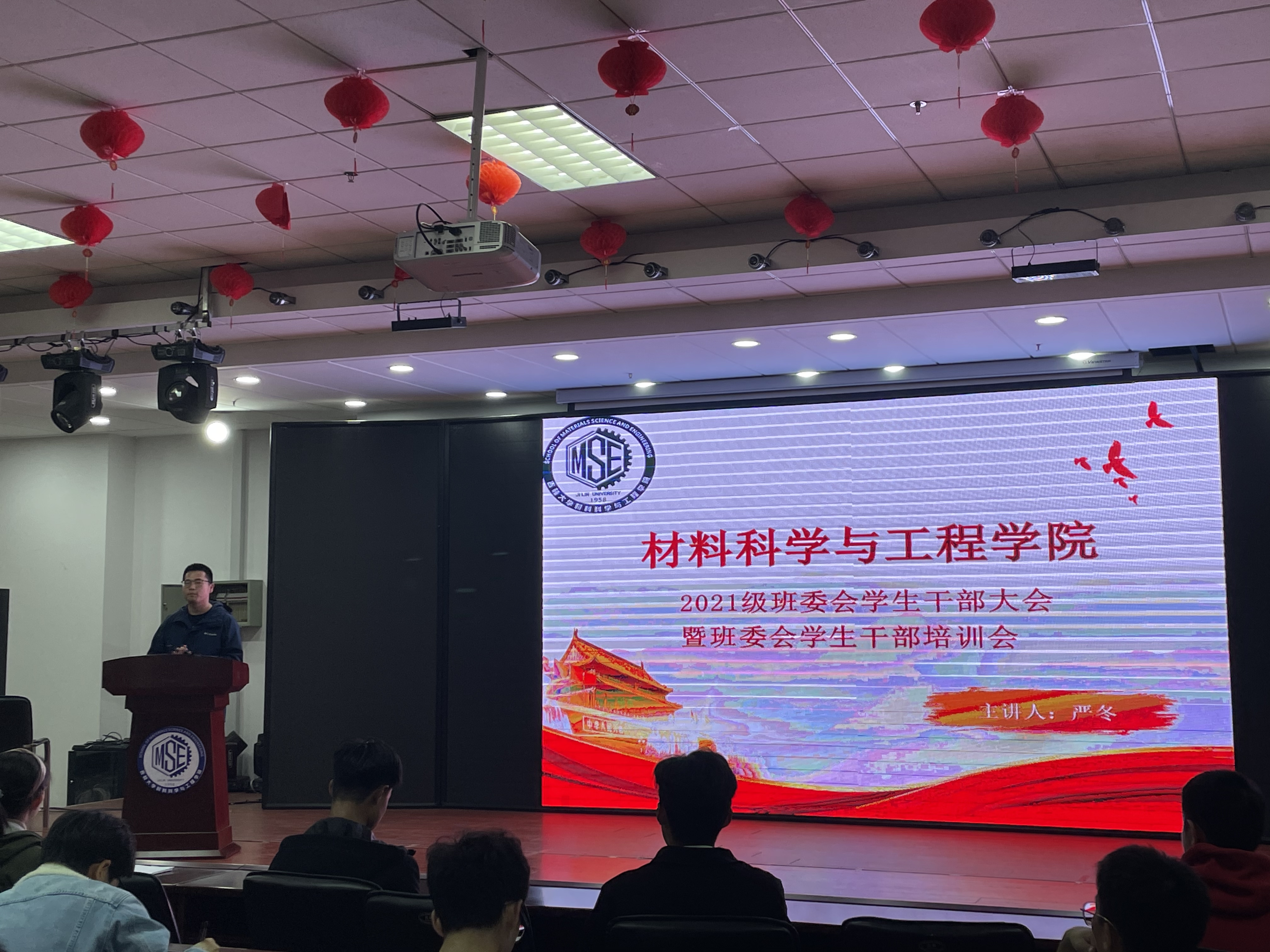 于10月15日召开材料类2021级班委会学生干部大会暨班委会学生干部首场培训。本次班委会议由学院2021级辅导员严冬老师主持,全体2021级班委会学生干部参加会议。