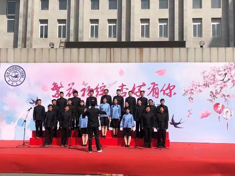 2020级11班的同学们为大家带了一首《少年中国说》,男同学们身着中山装,女同学们身着民国风新式校服,在明媚的春光映衬下倍显朝气蓬勃,歌声铿锵有力、充满激情。歌曲一出便获得了台下同学们的热烈掌声,同学们脸上都洋溢着自豪和青春的激情。11班同学的歌声在偌大的校园里余音缭绕,歌声彰显了材料学子的青春之气,彰显了材料学子的赤子之心和愿为党付出青春,为祖国的发展奉献终身的决心。吉大学子,坚忍有恒心;吉大学子,勤奋知图强。