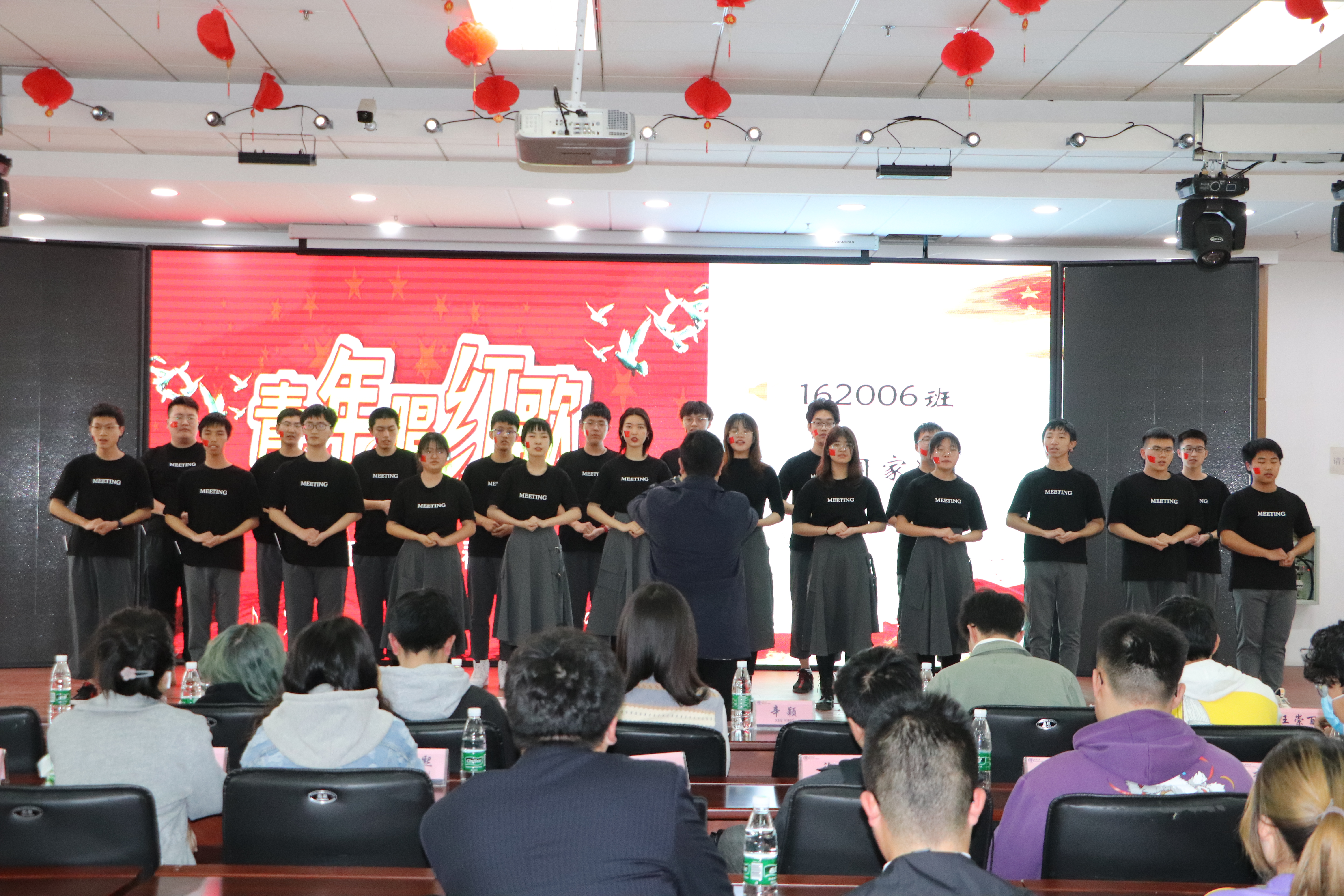 全体2020级本科生,以班级为单位,每班合唱一首红歌以及一首青春向上的歌曲,由色图