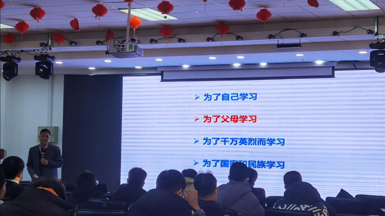 会议伊始,李东生书记先以诙谐的语调拉近与同学们间的距离,随后讲述了同学们目前学习生活存在的三个问题,即缺乏动力、兴趣、能力三个方面,警醒学习松懈的同学,使他们意识自身存在的问题,紧接着,李书记通过一些残疾人通过奋斗获得成功的例子,让同学们体会到生活的艰辛,更加珍惜现在的学习生活,使同学们加强面对困难的勇气与信心,重新获得奋勇向前的动力。随后李书记从为自己学习、为父母学习、为千万英烈学习和为国家和民族学习四个部分强调了学习的重要性,提高同学们们对学习的重视程度,使同学懂得报答与感恩,明确学习目的,认真规划接下来的学习生活。会议接近尾声时,李书记结合多年教学经验与自己的体会教授同学们正确的学习方向与学习方法,使同学们学习更具方向性与计划性,最后,李书记表达了对同学们未来表现的期盼,并祝愿同学们期末取得优异的成绩。