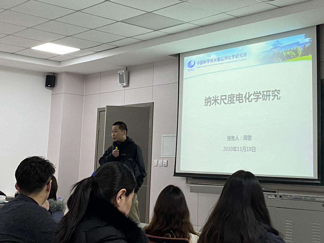 会议伊始,刘靖宇处长为大家介绍了应化所的概况、以及近几年来的中科院研究生招生及报考情况、资源平台和待遇等,同时对同学们的到来表示无限的憧憬与希望。接下来,周敏研究员结合他在美国有趣而难忘的工作经历,以及回国后在应化所的研究方向和研究成果,让同学结合自己经历对未来的生活进行思考,加强了同学们对未知的将来提前做好准备的信心。会议期间同学们积极提问,老师们也一一详细地进行了解答同学们关于考研、保研、出国方面的困惑,收获了同学们热烈的掌声。