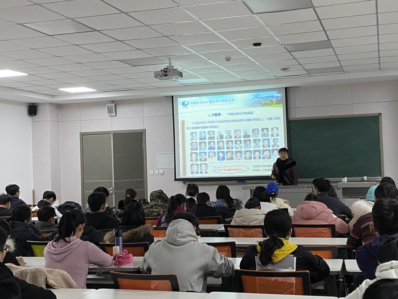 材料物理专业于2020年11月19日在前卫第三教学楼113室举办2018级年级大会。本次会议由材料物理辅导员辛颖老师主讲,全体18级材料物理学生出席会议。同时,本次会议特别邀请了中国科学院长春应用化学所(以下简称应化所)教育处刘靖宇处长、邢晶老师、周敏研究员,为同学们讲解中科院系统的保研、考研相关资讯。
