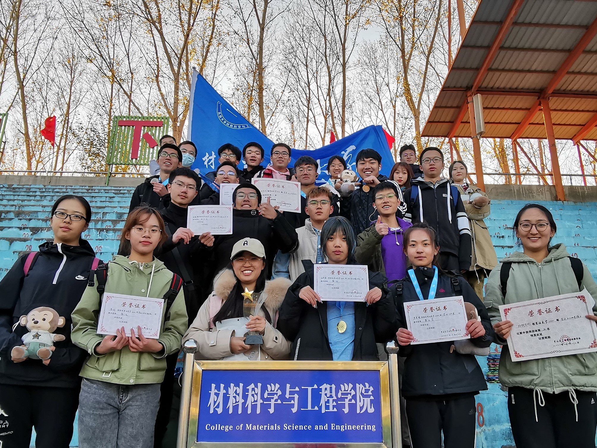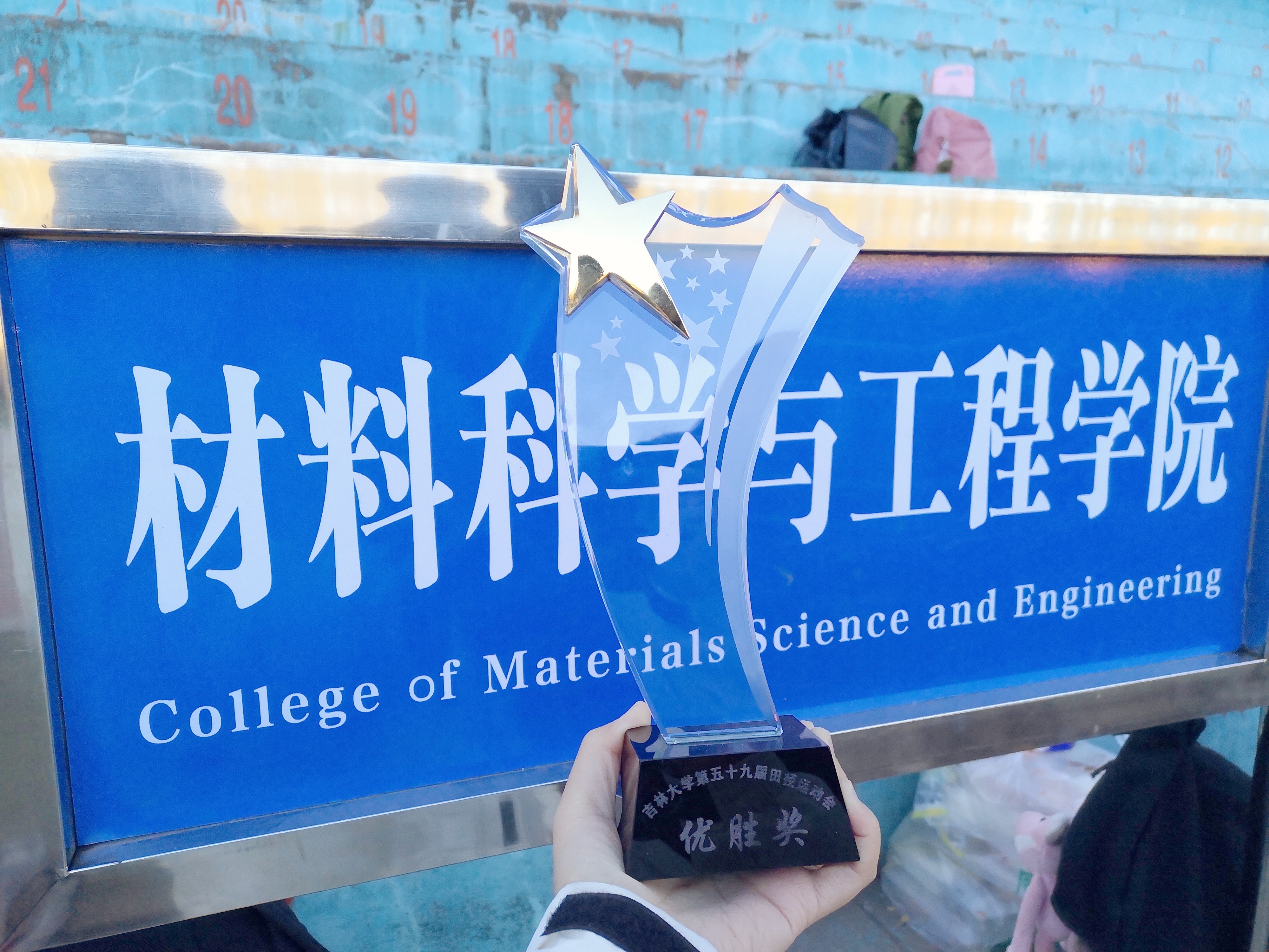 获得学生组团体总分第八名的优异成绩,象征着荣誉的奖杯是全体运动员努力拼搏、不断突破自我的见证。其中,王滨滨、姜润分别在女子200米和一分钟跳绳项目中获得金牌,王思宇在女子800米项目中获得银牌,申明扬、毕安童分别在男子立定三级跳远和女子铅球项目中获得铜牌,李卓伦、杨康乐、孟繁彤、王成晔在男子4*100米接力项目中获得铜牌,此外,孙毓瀚、芦英琦、郑蕊、武特特等共计11人次进入决赛前八名。不仅仅是这些获奖运动员,所有此次参赛运动员都赛出了风格、赛出了水平,向全校师生展示了材料学院的风采。
